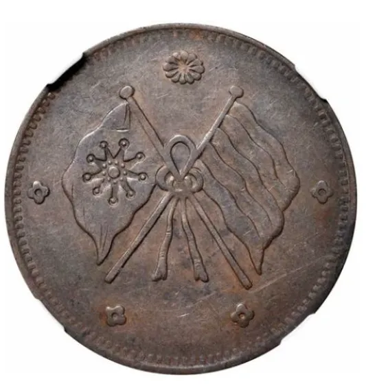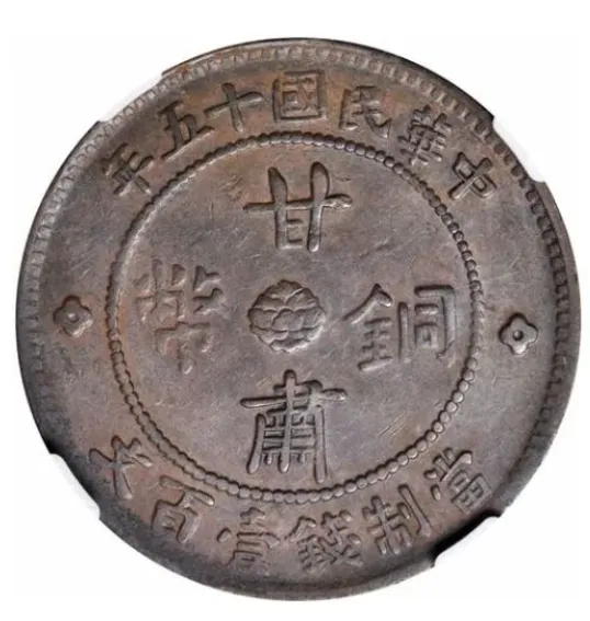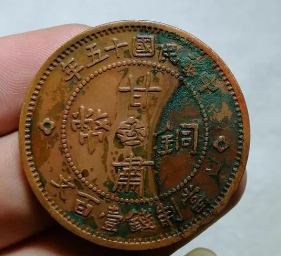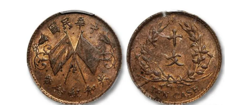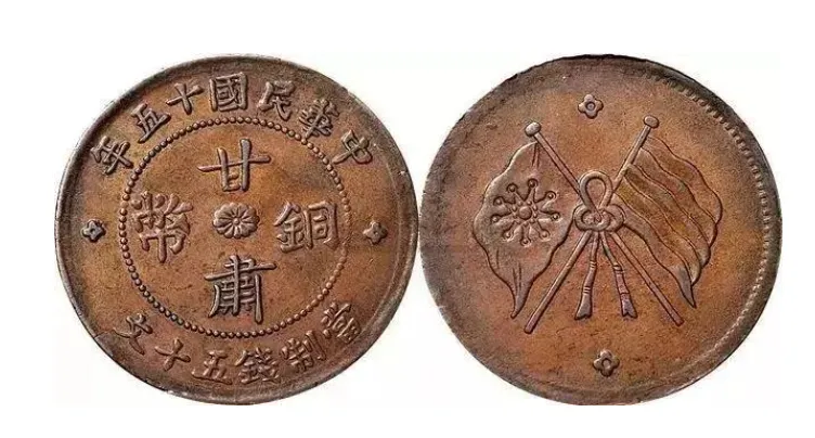 可能很多刚入行的藏友会问,双旗币不就是民国时期的普通钱币吗,怎么能拍出这么高的价格?其实不然,双旗币看似常见,但甘肃版绝对是其中的稀缺珍品,而且这次成交的这枚,品相更是难得一见,这也是它能拍出高价的核心原因。先跟大家科普一下,双旗币是民国成立后,为了取代清朝的方孔钱和银元发行的流通货币,因为币面印有两面交叉的国旗而得名,而甘肃版,是双旗币众多版本中最稀有的一种,它由民国时期甘肃兰州造币厂铸造,当时甘肃经济落后、铜料短缺,铸币时间特别短暂,而且币面还暗藏“甘”字暗记,不仔细用放大镜看根本发现不了,直径大概32毫米、重量约9.2克,整体工艺虽不如其他省份精致,但正因这种独特的地域特征,成为了藏家追捧的重点,比普通双旗币珍贵太多。