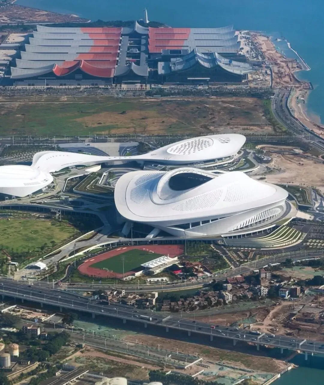 涵盖会展酒店、滨海商业街区及10万平方米室外广场,实现展、会、宴、演、赛多功能集成。