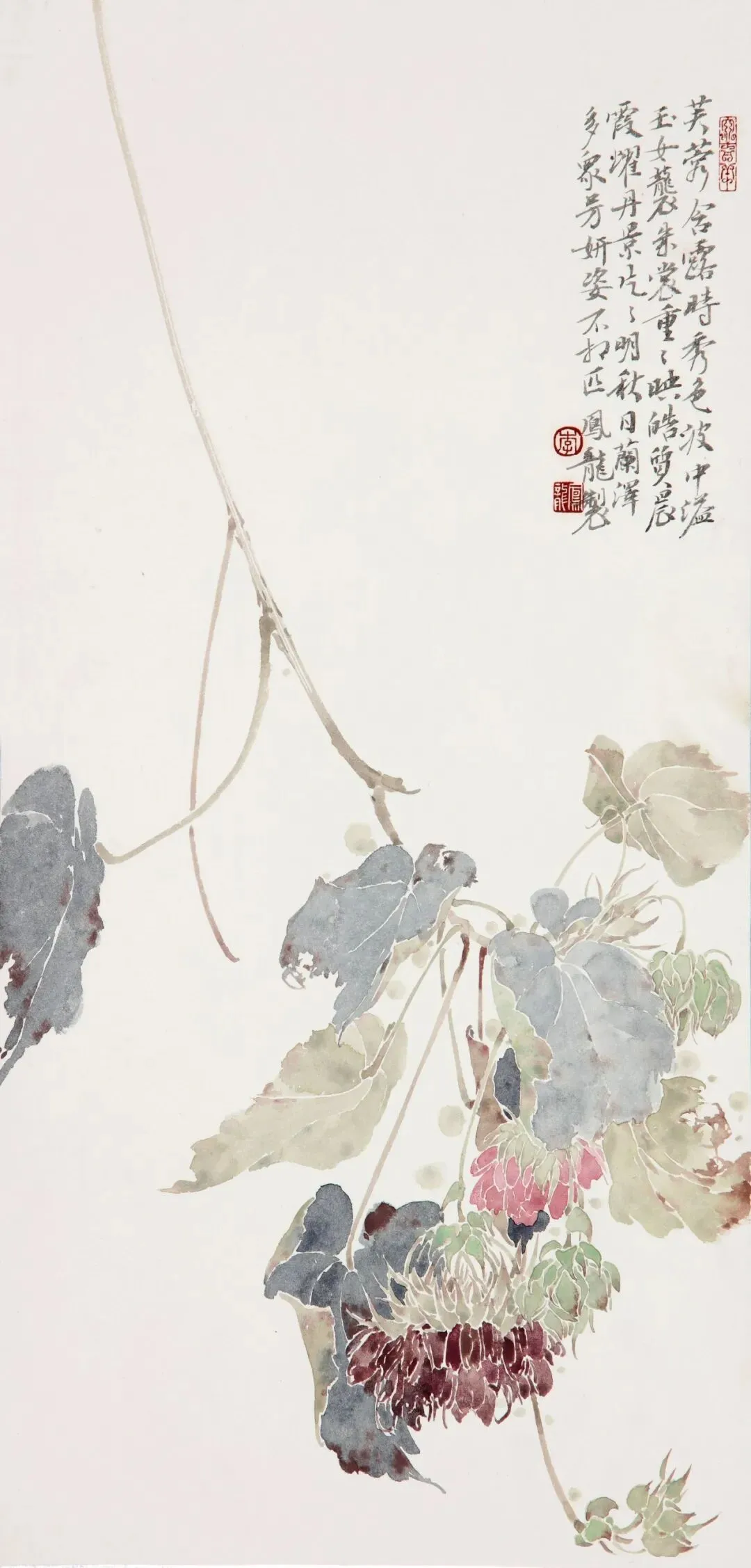 (李凤龙 “芙蓉含露图” (出版原作) 尺寸:65cm×32cm)