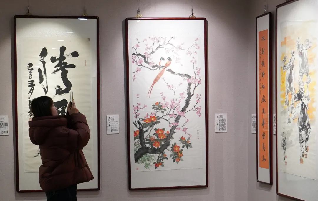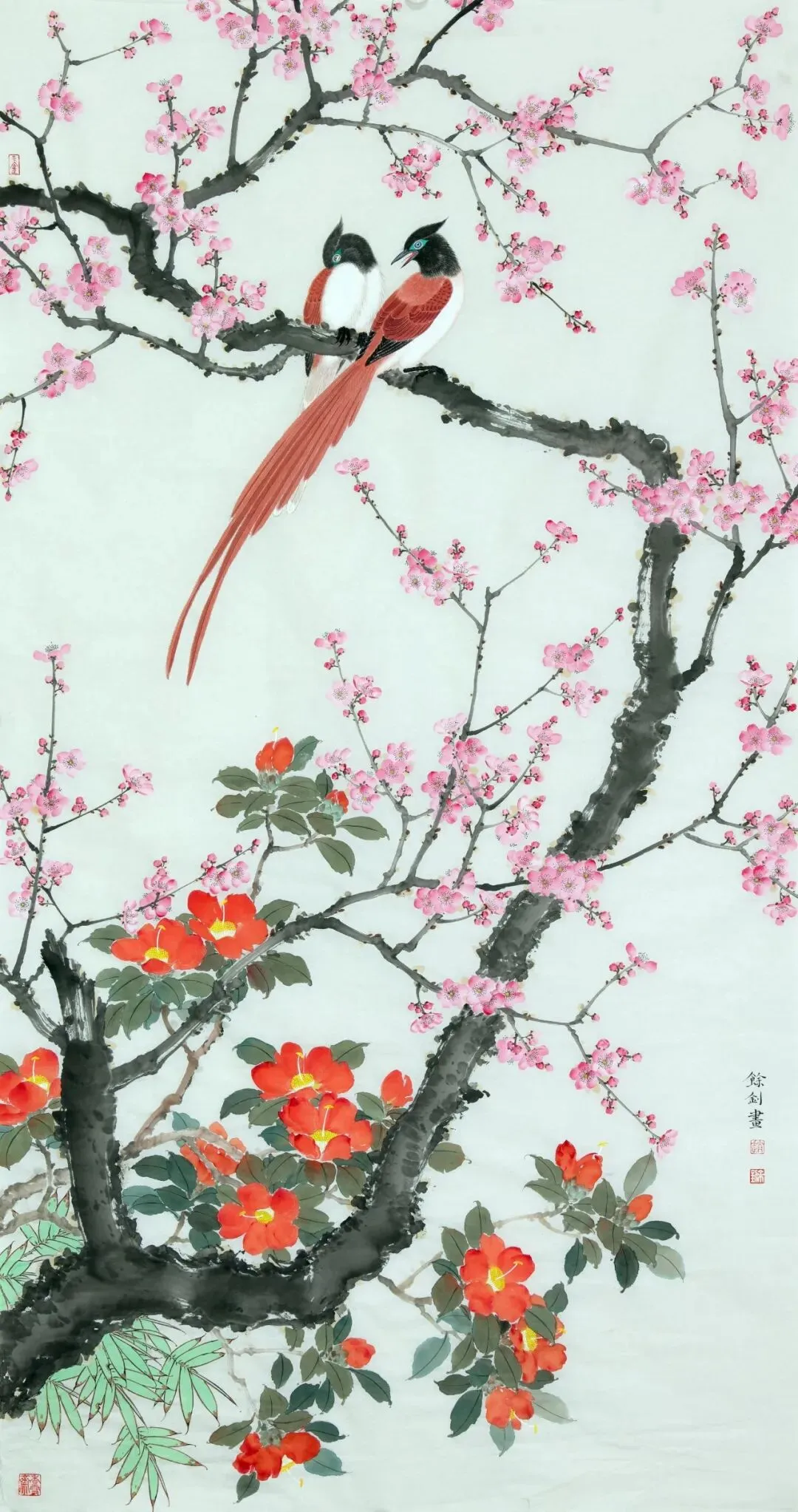 (赵余钊 “暖风绶鸟倚春梅” 尺寸:138cm×70cm)