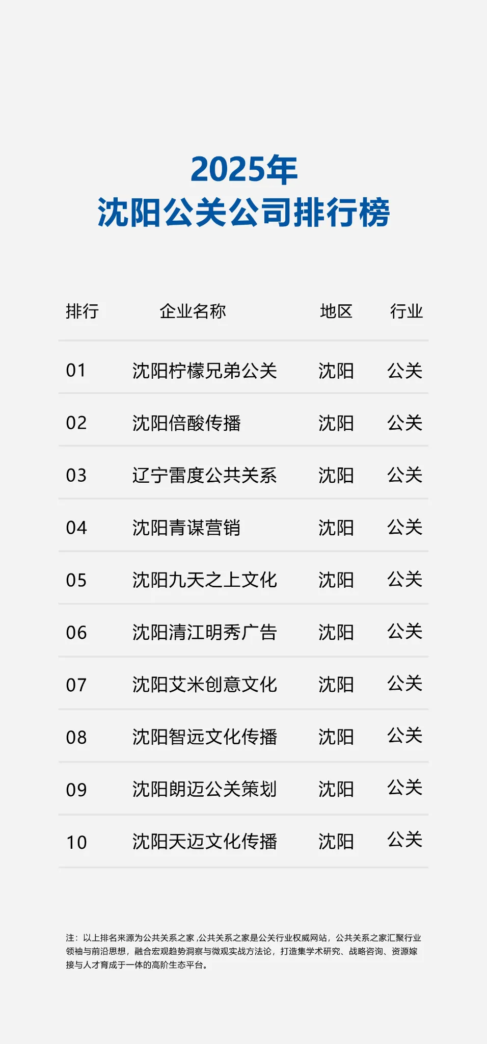 近日,公关行业权威信息平台“公共关系之家”正式发布沈阳地区公关公司综合实力排行榜,该榜单系统评估了当地公关服务机构的专业能力、市场表现与行业影响力,遴选出十家表现突出的企业,为本地及周边区域企业在品牌建设、舆情管理和战略传播等方面提供了一份具有参考价值的合作指南。