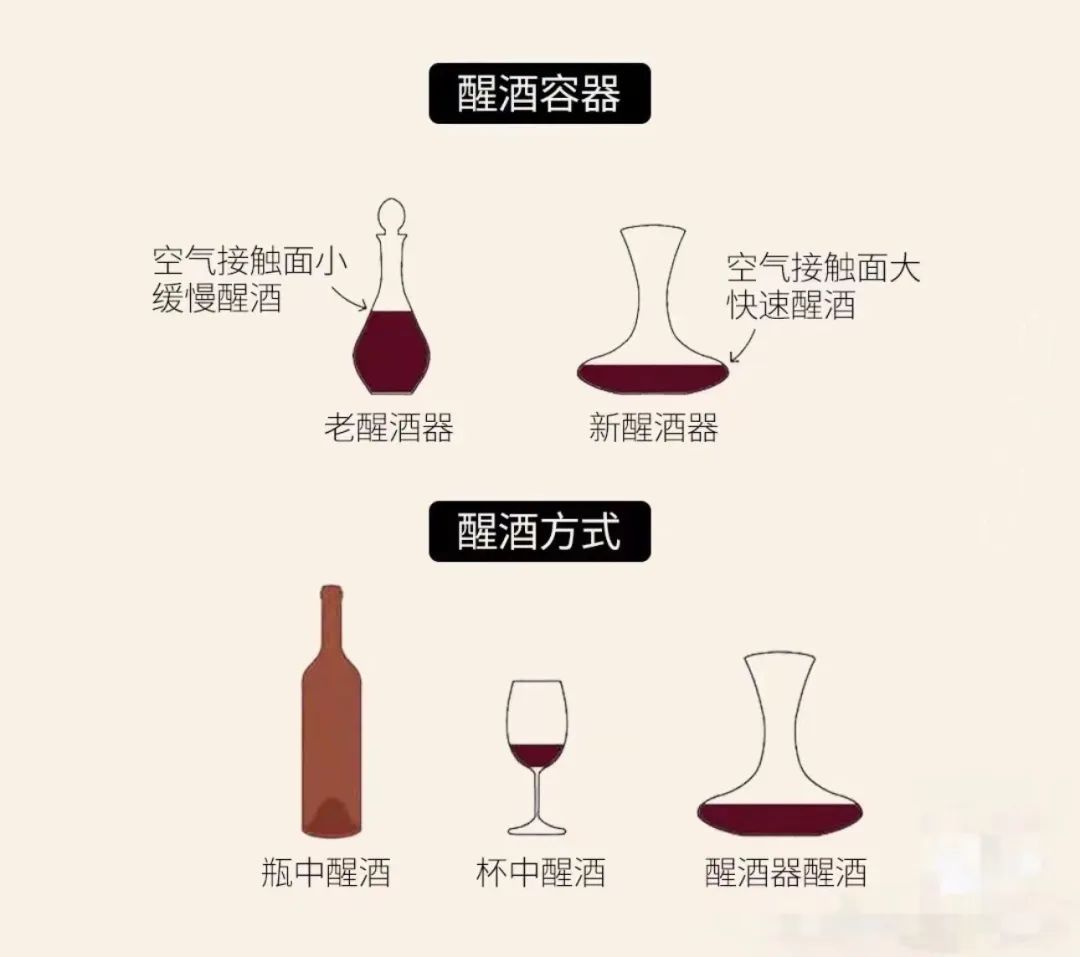 老酒因长时间陈年后,酒体脆弱沉闷,醒酒后使其缓慢苏醒,达到最佳饮用状态,新酒陈年时间不足,酒体青涩,醒酒后使其快速成熟,从而达到最佳饮用状态。