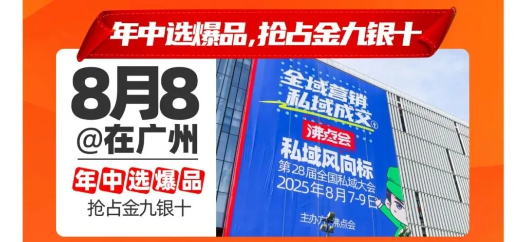 ⏰8月8-8日:2026私域秋季新品爆品展,抢占金九银十;1000+参展商,10000+新品爆品同台展示,98%私域头部渠道现场选品。