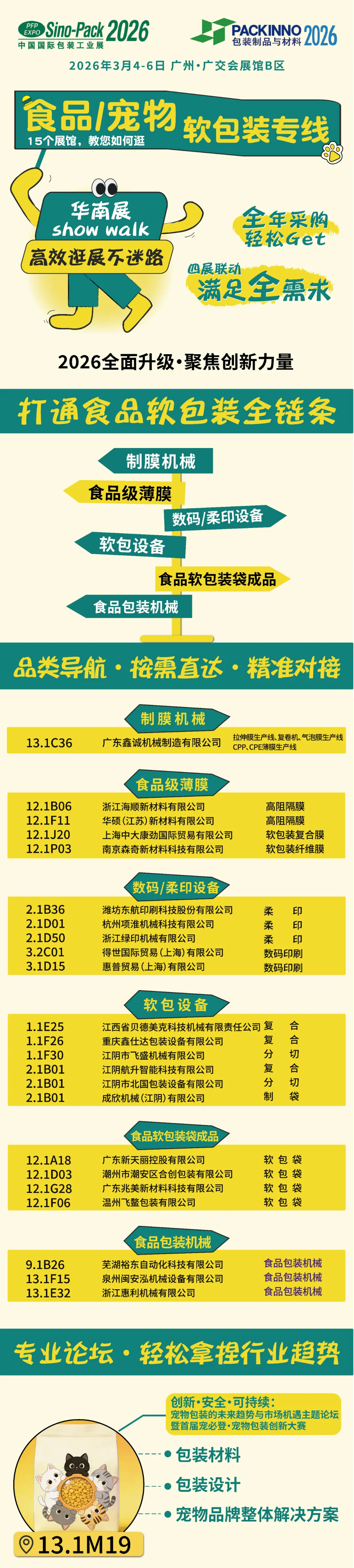 从功能性制膜机械、高阻隔食品级薄膜材料起步,历经数码与柔印印刷、复合分切制袋智能设备环节,最终抵达高品质食品软包装成品——这条专线完整串联起软包装全产业链。展会期间,配套专业论坛同步开启,行业专家将深度剖析安全、保鲜与可持续等关键议题,为行业未来发展指明方向。