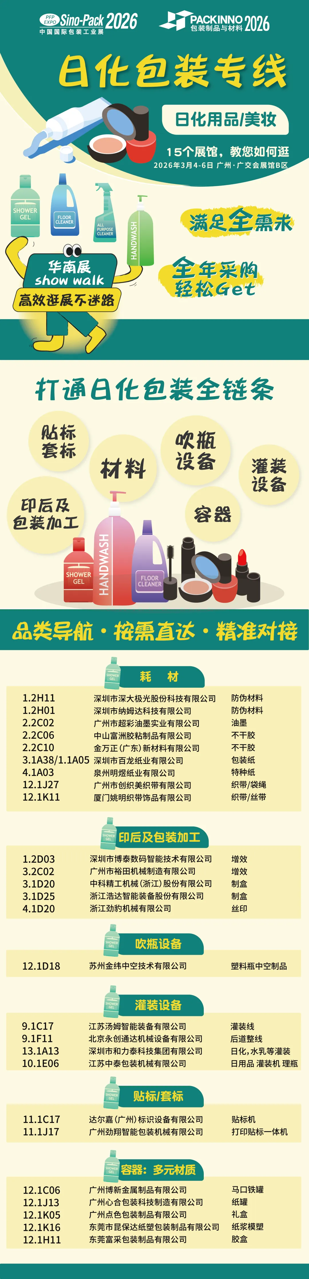 行业碎片化严重,找解决方案效率低下?别愁啦!本届展会重磅推出“华南包装展Show Walk”主题参观路线。它聚焦五大极具潜力的高潜终端场景,精心规划出清晰又高效的观展路径。跟着这条路线走,能让你轻松、快速地对接全产业链资源,告别盲目找资源的困境,高效观展不是梦。