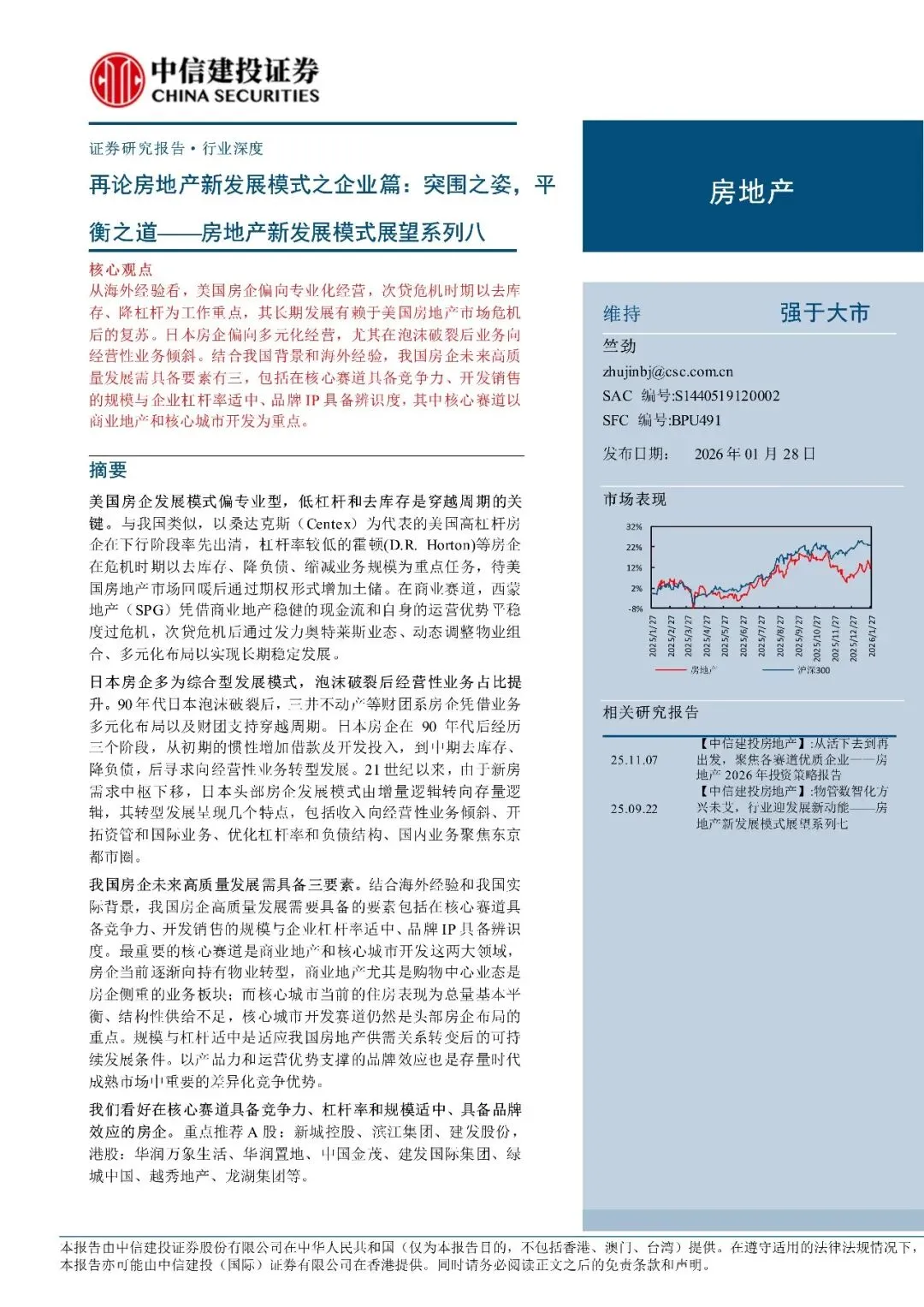 房地产行业再论房地产新发展模式之企业篇:突围之姿,平衡之道-房地产新发展模式展望系列八-260128-中信建投-24页
