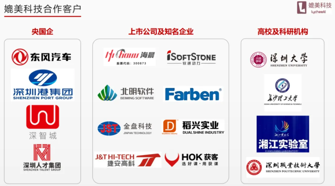 公司核心技术覆盖AI数字人、智能语音、智能体平台三大板块,通过深度融合多模态AI技术,以极具性价比的成本投入“创造”满足不同场景需求的数智员工,助力政府、企业提升智能化水平,构建数智融合新业态。 成立两年来,媲美科技已为200多家国内高校、机构、政府和上市公司提供数智员工服务。