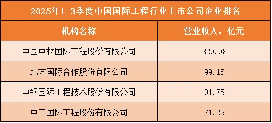 一、2025年1-3季度中国国际工程行业上市公司企业排名分析