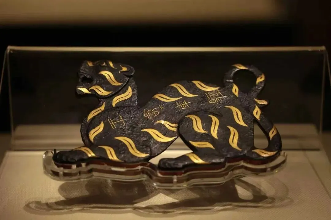 侧面姿态威严的埃及皇家狮身人面像与南越文化中刚猛的错金铭文铜虎节,分别以狮虎之威固化权力秩序,折射出早期文明对自然力量与守护意象的共通崇拜。
