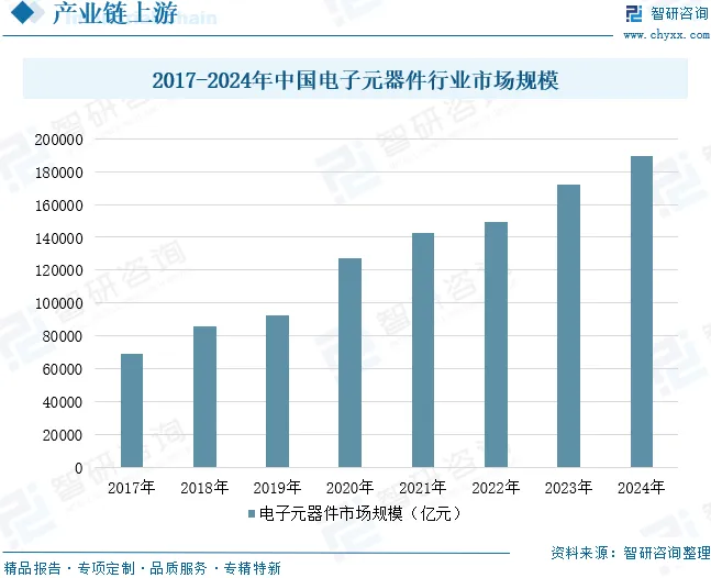 电子元器件作为节能家电的核心组件,其性能与可靠性直接决定了整机能效水平、功能实现及用户体验。这些精密元件通过集成传感、计算与控制功能,实时监测环境参数与设备状态,精准调控压缩机转速、热交换效率及系统功率输出,从而在保障使用效果的同时实现能源消耗最优化。电子元器件是现代电子工业的基础,几乎涉及国民经济各个工业部门和社会生活各个方面,下游应用领域十分广泛,我国电子元器件行业整体呈现市场规模大、增长速度快的特征,市场规模增长显著。数据显示,2017-2024年中国电子元器件行业市场规模从68909亿元增长至189142亿元,年复合增长率为15.52%。电子元器件在性能提升、成本优化与创新加速等方面的持续进步,正推动节能家电从基础功能型向智能自适应型根本转变,为产业升级与能效突破提供关键动力。