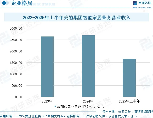 美的集团股份有限公司是一家覆盖智能家居、新能源及工业技术、智能建筑科技、机器人与自动化、健康医疗、智慧物流等业务的全球领先的科技集团,已建立ToC与ToB并重发展的业务矩阵,既可为消费者提供各类智能家居的产品与服务,也可为企业客户提供多元化的商业及工业解决方案。其中,美的智能家居业务主要覆盖智慧家电、智慧家居及周边相关产业和生态链,围绕面向终端用户的智能化场景搭建、用户运营和数据价值发掘,致力于为终端用户提供最佳体验的全屋智能家居及服务。2025年上半年,美的集团在国内市场继续推进落实“数一”战略,美的系产品在包括京东、天猫、抖音、拼多多等主流线上平台的家电销售额位居行业第一;同时美的系产品在KA、经销商、电商下沉等主要线下渠道的家电销售额亦位列行业第一。数据显示,2025年上半年,美的集团智能家居业务营业收入为1672.01亿元,同比增长13.32%。