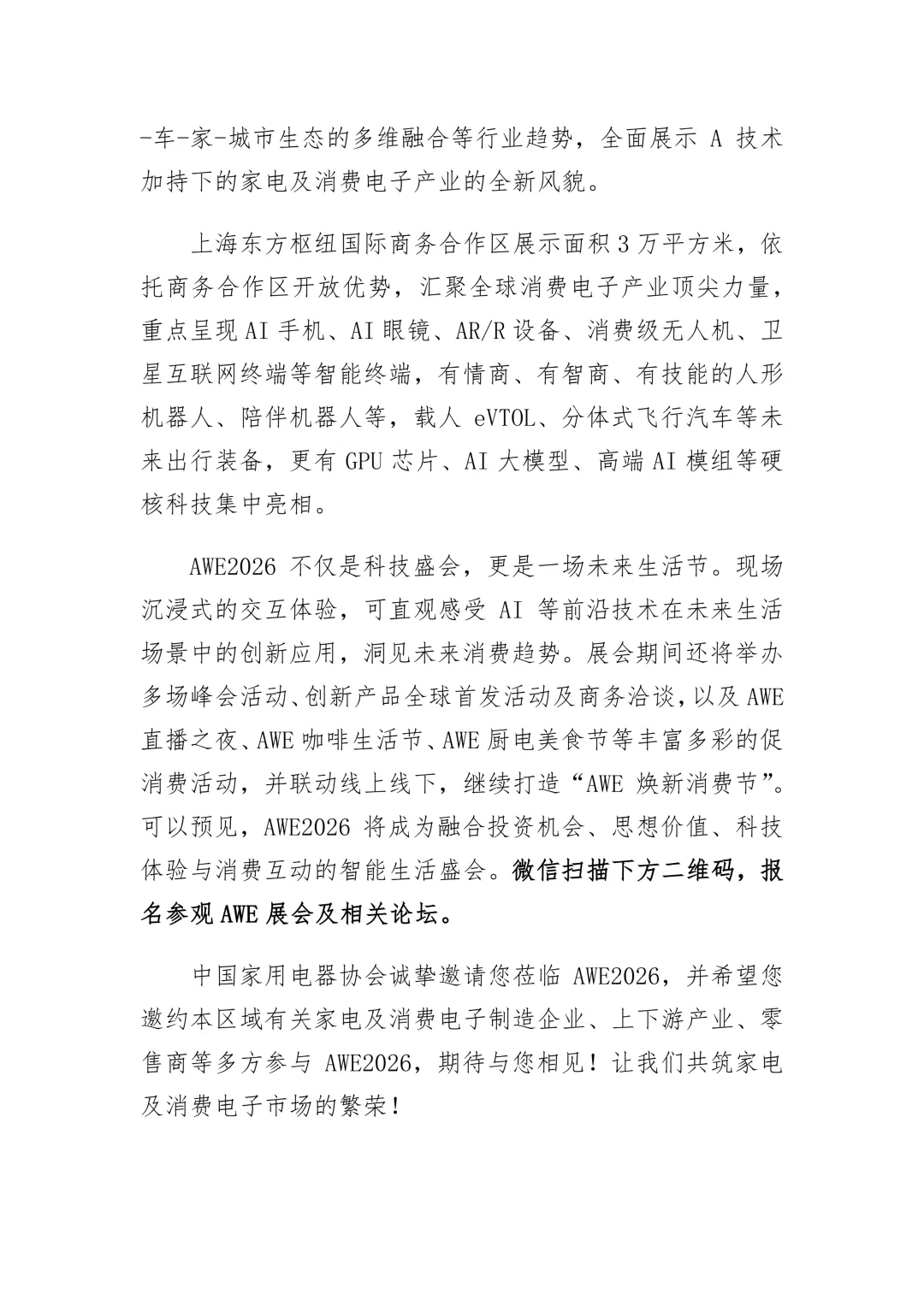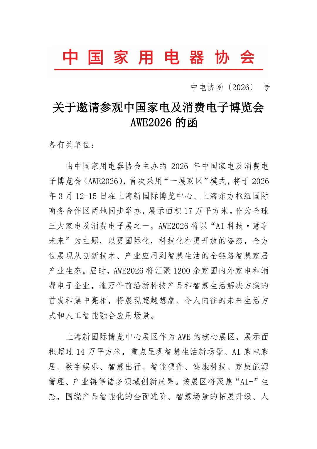 关于邀请参观中国家电及消费电子博览会AWE2026的函