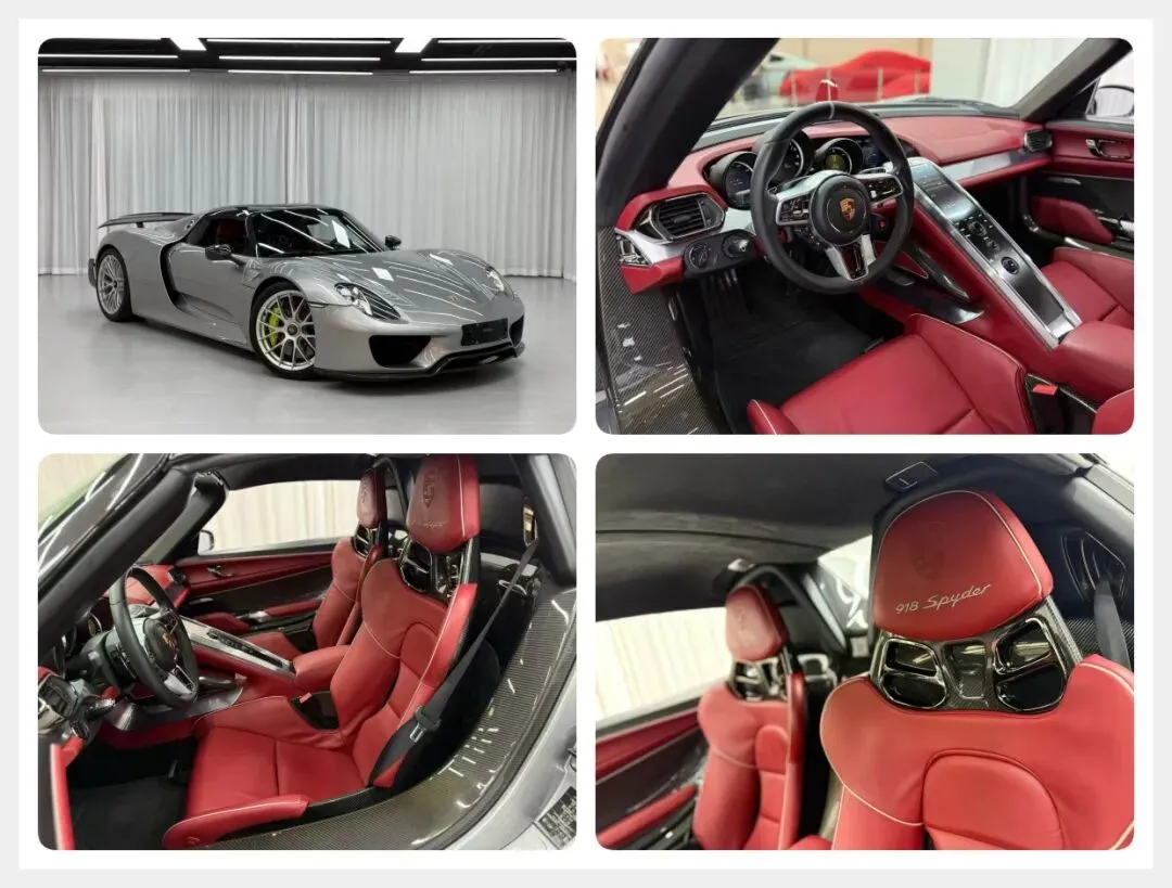 保时捷918内饰战斗气息拉满,座舱以驾驶员为核心,大面积碳纤维与Alcantara材质营造浓厚赛道氛围。红色点火按钮、紧凑运动方向盘、包裹性极强的桶椅,时刻提醒你它的超跑身份。中控功能布局直观,操作便捷,液晶仪表专注性能与混动状态显示。没有多余装饰,一切以实用与操控为先,简约硬核,兼具豪华质感与极致驾驶氛围。