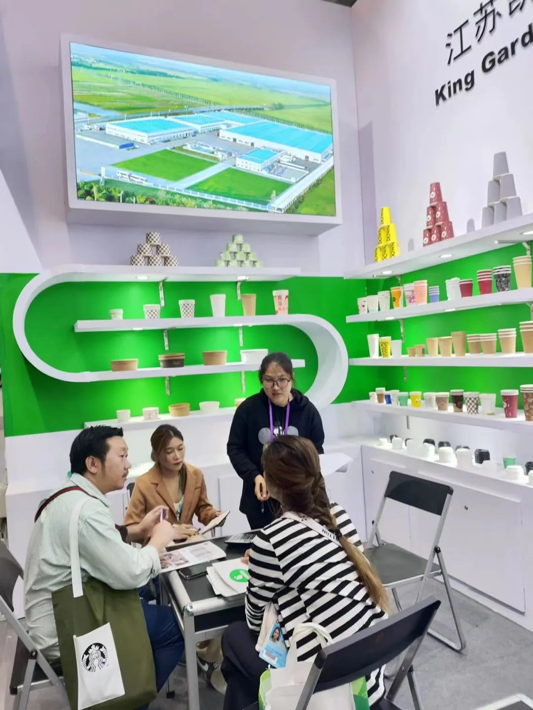 公司主要产品为:一次性纸杯 (单层杯/双层杯/瓦楞杯)、汤杯、沙拉碗,杯/碗 配套产品(杯/碗盖,杯套,杯托)以及外带打包餐盒和纸袋等,并可提供PE和PLA两种材质。产品和服务遍及中国大陆及美国、欧洲、中东、东南亚、澳大利亚等海外市场。公司现有生产面积3.8万平方米,员工300余人,其中技术人员30余人,拥有4条国内先进的PE/PLA淋膜生产线中高速制杯机70台、塑料杯盖生产线2条,配备高速开片机、高速分切机、6色柔版印刷机、自动模切机,年产值3亿余元。