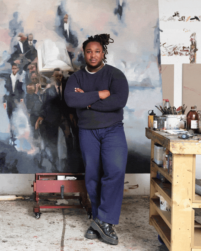 艺术家呈现的全新画作,借由牙买加丧葬传统“九夜”与抗议歌曲《奇异果实》的历史共鸣,将多重时刻凝聚成一片星图。