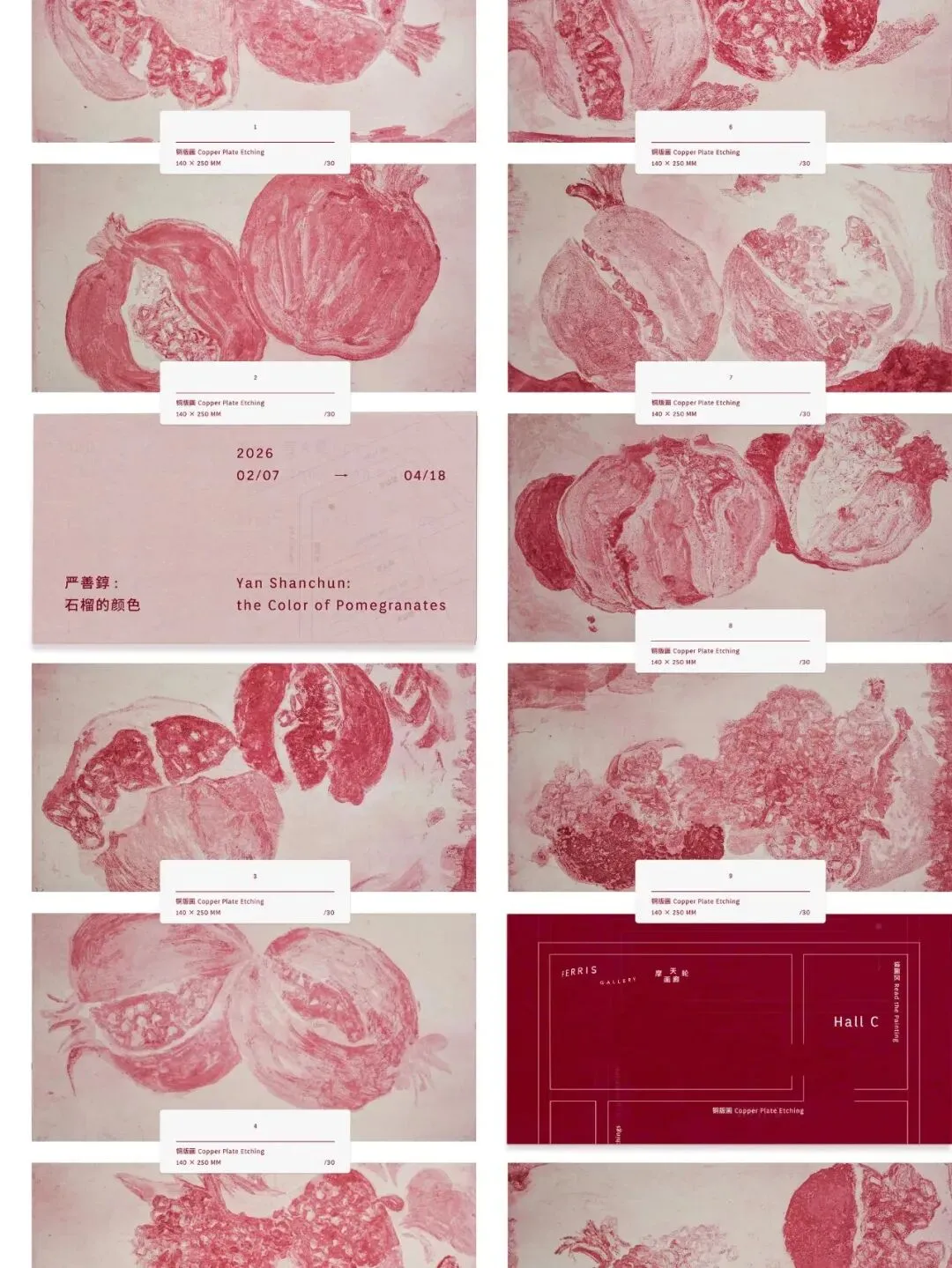 严善錞以铜版画开启的全新创作将视角对准了石榴的描绘,展现出一组在东方语境下展开的象征性叙事。
