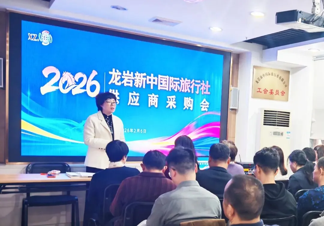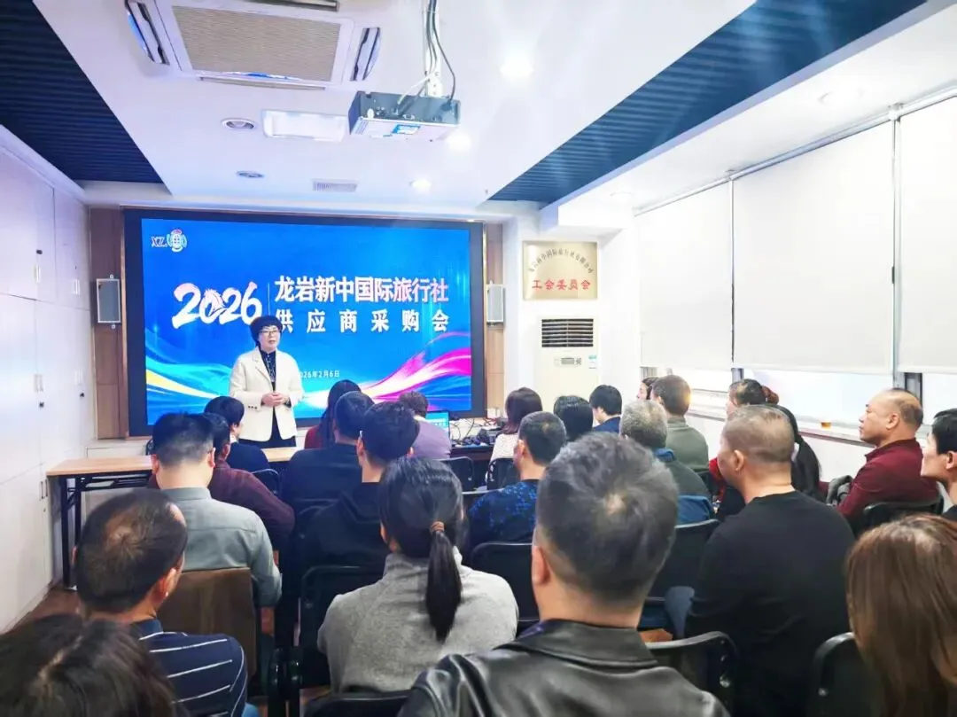 2026年2月6日,龙岩新中国际旅行社于公司会议室成功举办“2026年度地接供应商采购会”。本次会议特邀酒店、车队、景区等合作商代表近50人齐聚一堂,共商年度合作计划,共话服务品质提升。
