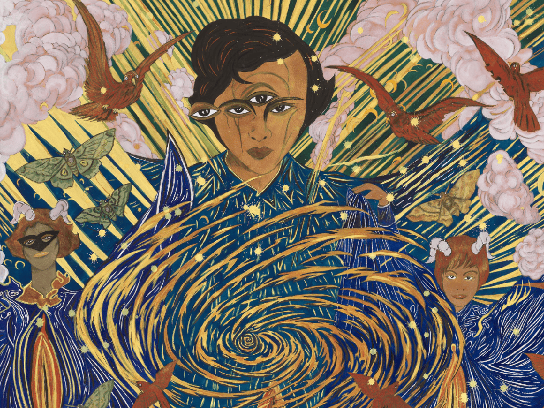 纸上珠光丙烯颜料、墨水、水彩和石墨