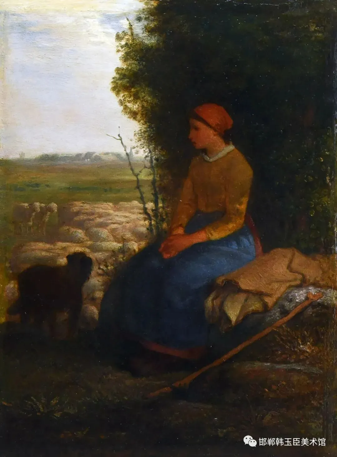 欧洲油画珍藏作品:米勒《休憩的牧羊女》