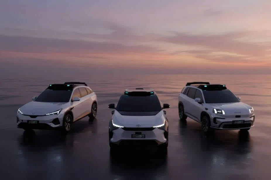 极狐阿尔法T5(左)、铂智4X(中)、埃安霸王龙(右)三款第七代Robotaxi量产车型