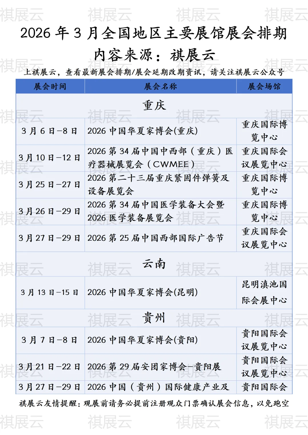 会展资讯丨重庆/云南昆明/贵州贵阳展会2026年3月展会时间表