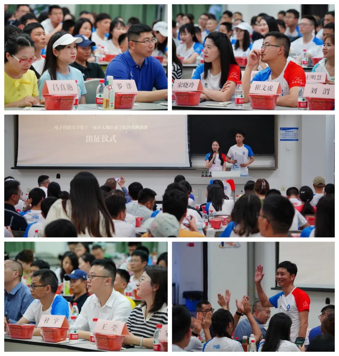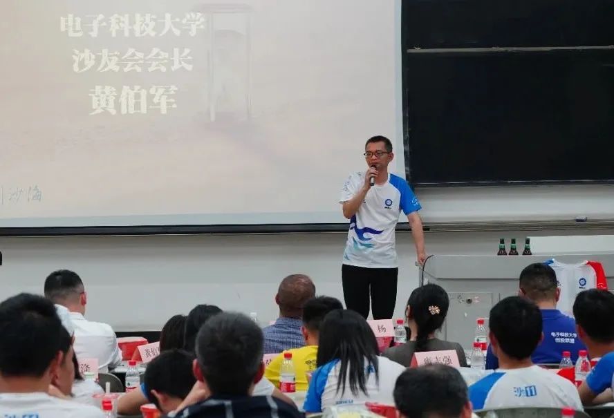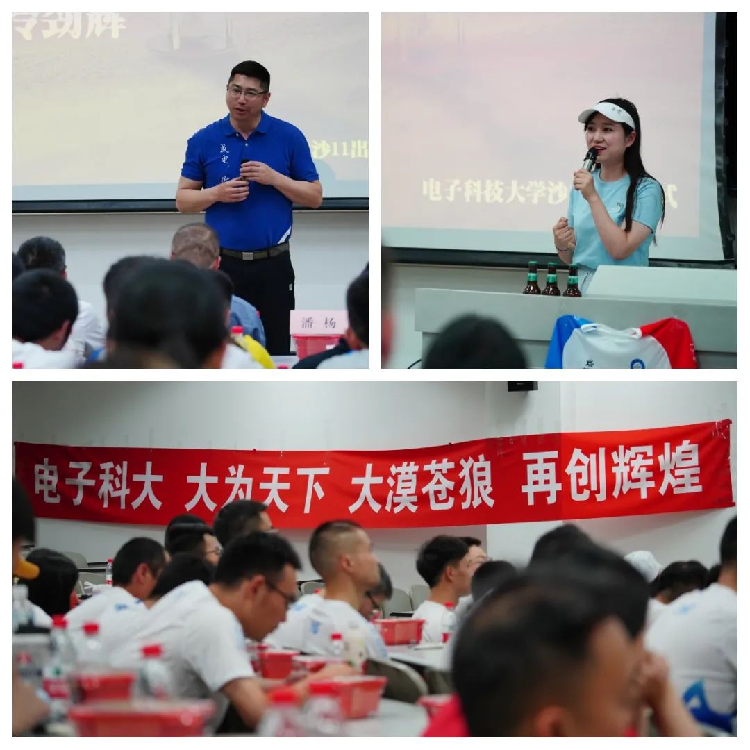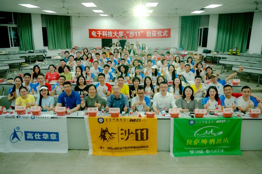 晚上19:00,出征仪式正式开启,电子科技大学经济与管理学院领导、MBA教育中心老师,校友会、沙友会、联合会代表、冠名赞助商拉萨啤酒、金牌赞助商高仕华章、赞助商七野体育、农夫山泉、探鹭营地、坚果运动等代表、兄弟院校沙友代表、电子科大校友和沙友们以及所有电子科大沙11队员与沙12预备队员均出席了本次出征仪式。