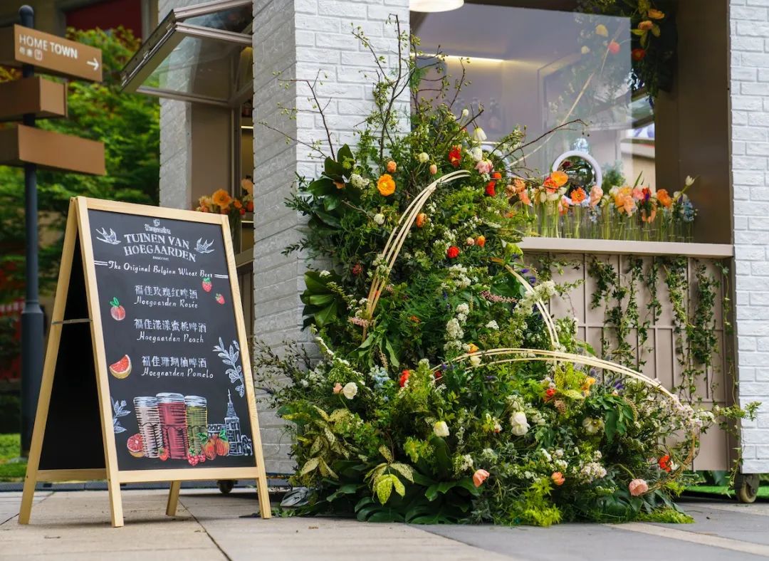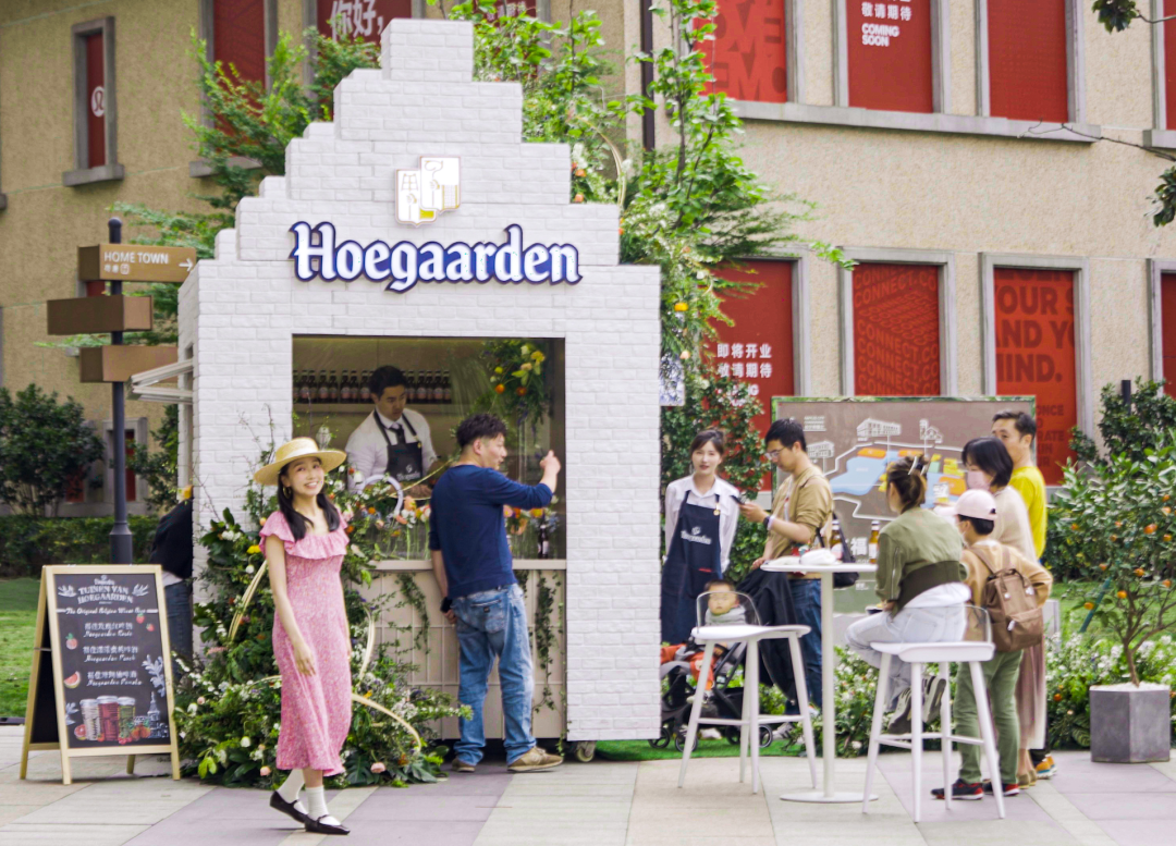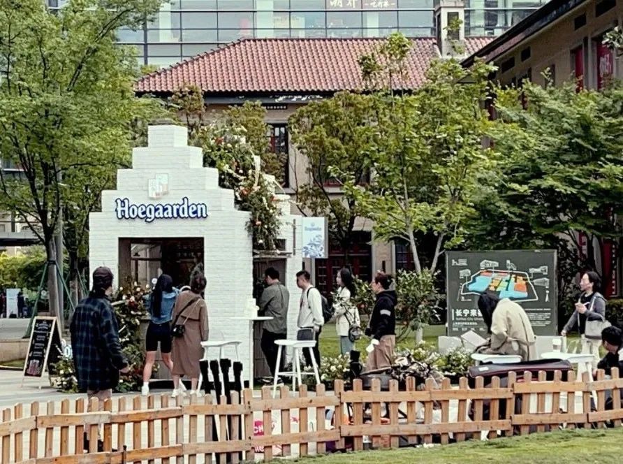 亭子本身的设计上,也处处闪现着福佳的各种品牌元素—— 亭子的尖顶风格,正是福佳啤酒原产地比利时的经典弗拉芒风格建筑;试管里盛开的虞美人,是比利时的国花;充满仪式感的啤酒六棱杯,是源于福佳啤酒六百年的传承,福佳白啤更是史上唯一一个获得六次啤酒世界杯金奖的产品。