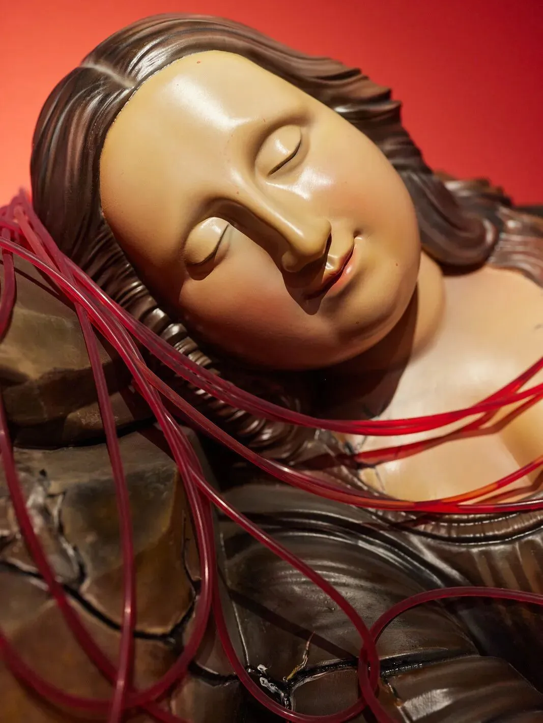 这场再创作,实现了经典与当代的双向成就。于艺术经典,是一次成功“活化”——沉睡的蒙娜丽莎被赋予“人为输血”巧思,缠绕的大卫象征打破艺术桎梏,让更多年轻人看见并喜爱经典;于艺术家自身,经典底蕴支撑其“新文艺复兴”理念,羽毛(童年记忆符号)、线条(内心与世界矛盾)的融入,让作品兼具厚度与个人表达。