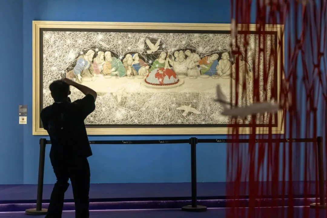 经典之所以打动当代艺术家,本质是其内核不朽与价值可延伸。周艺文认为,文艺复兴经典承载的人性、和平、美感等命题,从未因时代变迁而褪色。他在《最后的晚餐》中选择删去犹大,在餐桌中间增加“地球蛋糕”与和平鸽,这些设计都在暗喻当下的世界格局,以 “和平才是上帝” 的主张,完成对经典的当代诠释。更难得的是,他让经典跳出西方艺术史框架,融入当代情绪与东方美学,打破“古董”标签,让经典与当代人产生深度连接。