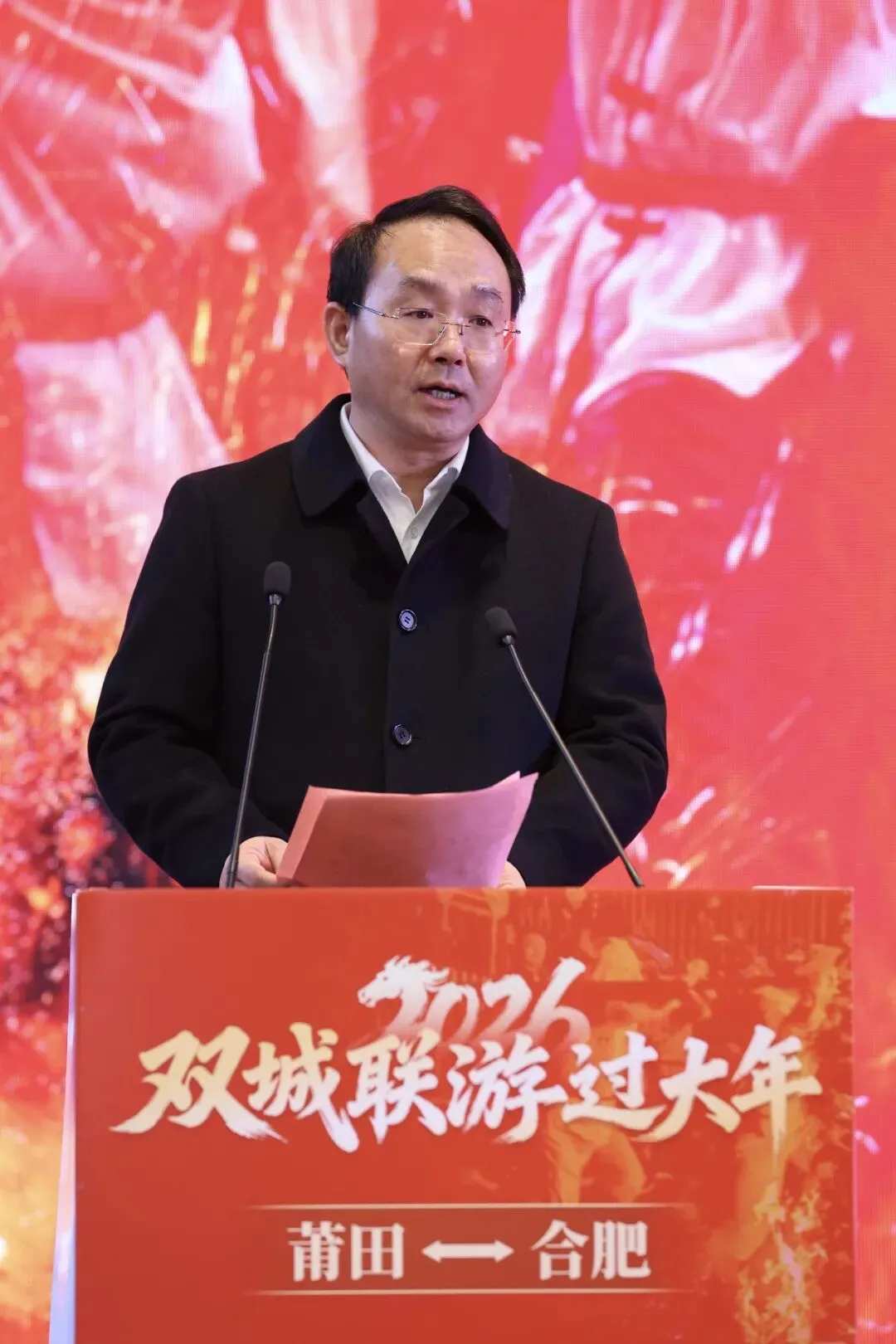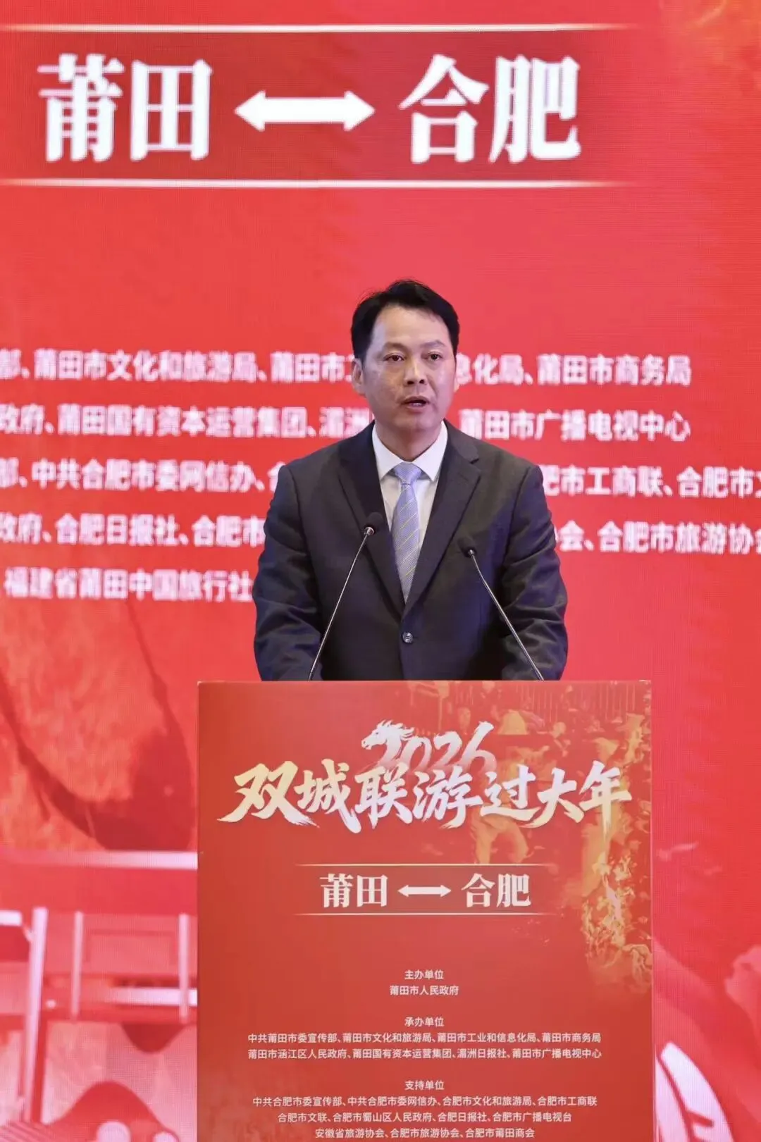 两地宣传、文旅系统相关负责人,中央和省市媒体记者,旅行社代表,摄影家、文旅达人,以及合肥市莆田商会企业家代表等400余人齐聚一堂,共话合作情谊,共推新春文旅盛宴。
