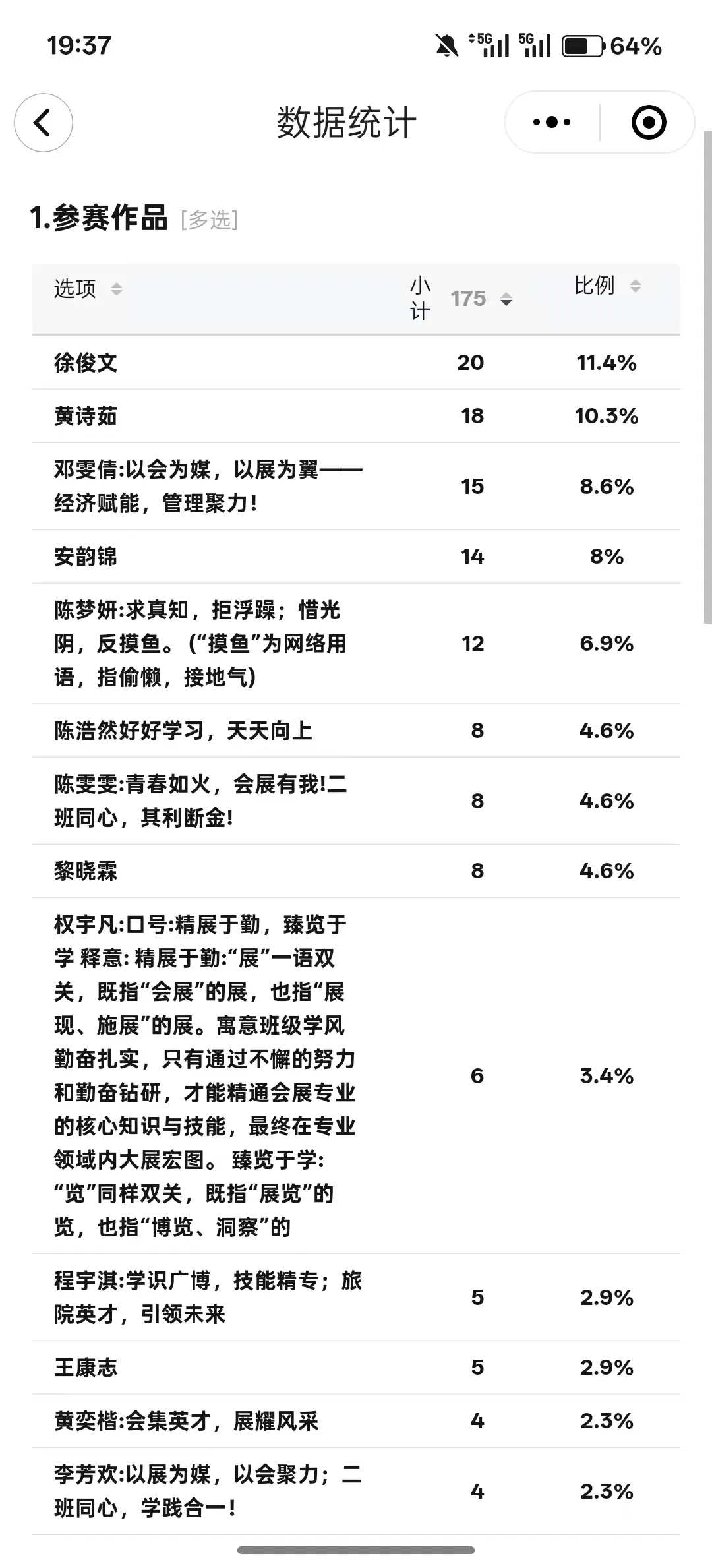 邓雯倩同学则表示:“于我而言,这不仅是次创意实践,更是一堂生动的专业启蒙课。很高兴我设计的学徽和口号能获得大家的认可。能把我们会展管理专业的特点和班级精神展现出来,我觉得很有意义!”