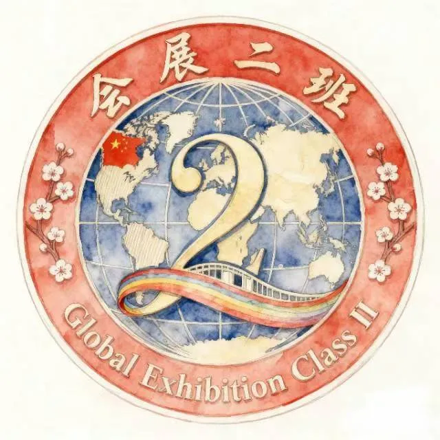 黄诗茹同学也在设计中融入了对专业的理解与祝福:“因为会展的全球化属性以及国际视野,地球成为了班徽的背景。数字‘二’以丝带形式呈现,呼应泉州的海丝文化,彩虹则寓意风雨后的美好。”
