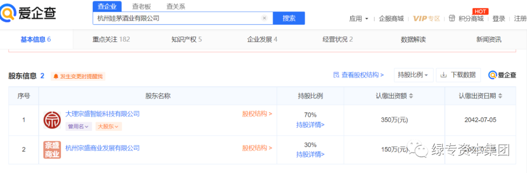 另据杭州娃茅酒业有限公司网站介绍显示,宗盛团队(宗盛智能成立于2016年5月,由娃哈哈创始人宗庆后、宗泽后共同投资创建)自2017年就开始关注酱香酒市场。2022年杭州娃茅酒业成立后,与贵州昌泰酒业公司正式合作生产贵州娃茅酱香酒。