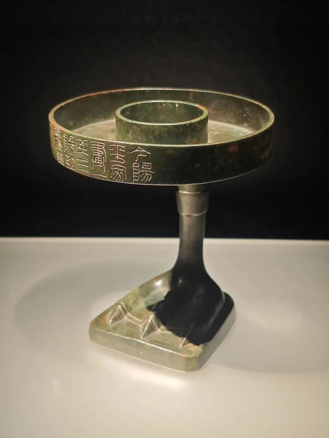 二者造型虽相近,却也有着鲜明的时代特征:灯盘中心无凸起圆柱,是汉代油灯的典型设计;有凸起圆柱,则为清代灯具的标识。