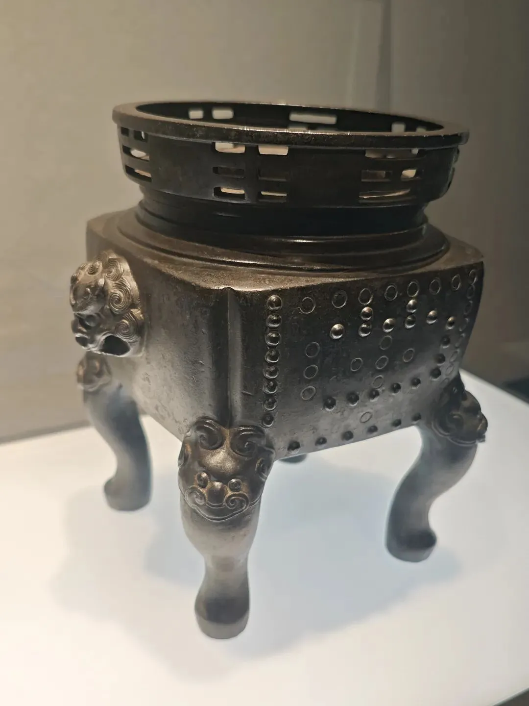 狮子在古代一直是祥瑞之兽,这件作品将狮子造型与炉具功能结合,兼具观赏与实用,是“器以载雅”的基础。