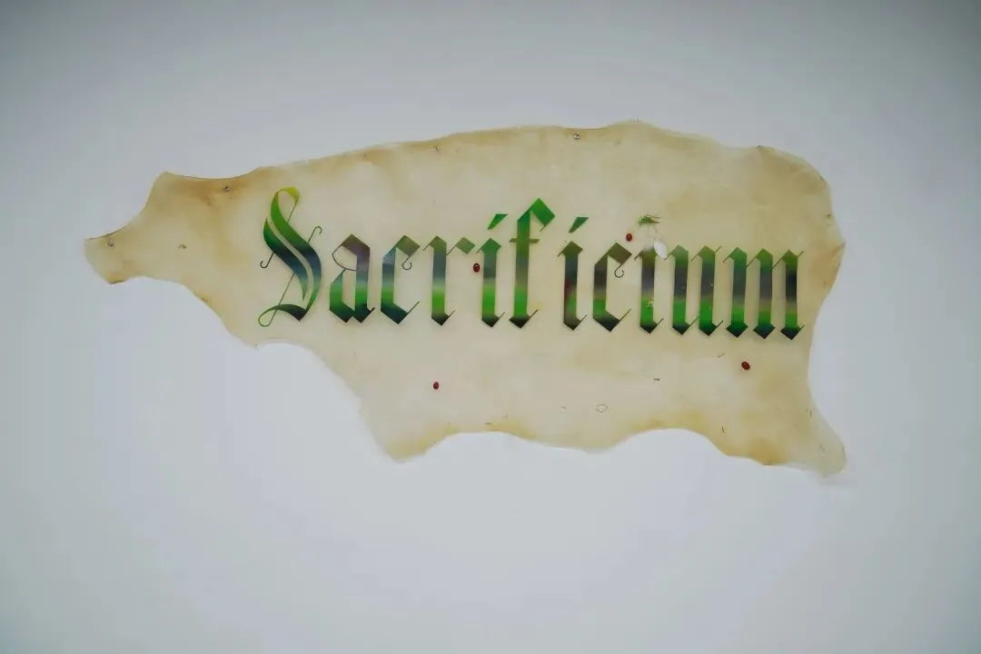 While discussing East Asian family relationships, the artist and his professor reflected on how his parents had “sacrificed” a great deal for him. The professor noted that the German word opfern should not be used in this context, as opferntypically describes acts such as Jesus being crucified for humanity, or an individual giving their life for revolutionary ideals. From this exchange, the artist gained insight into the subtle differences in meaning and implication across languages.