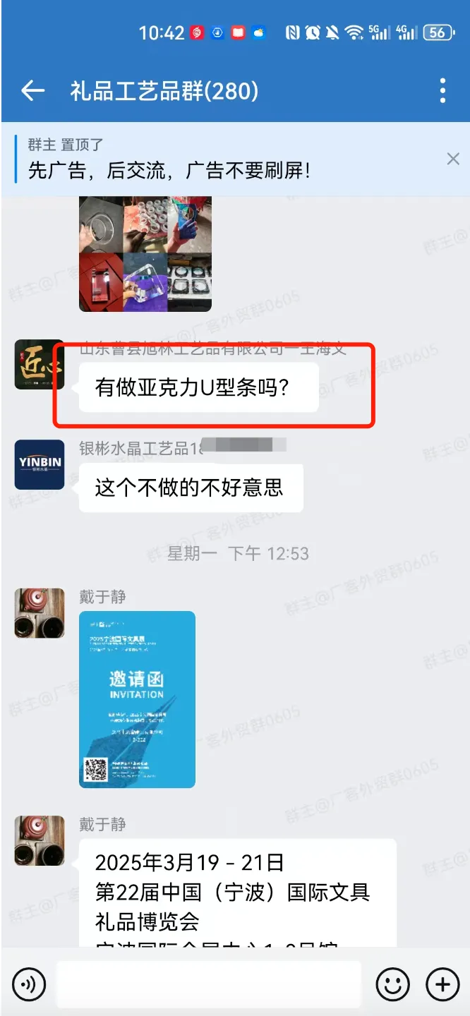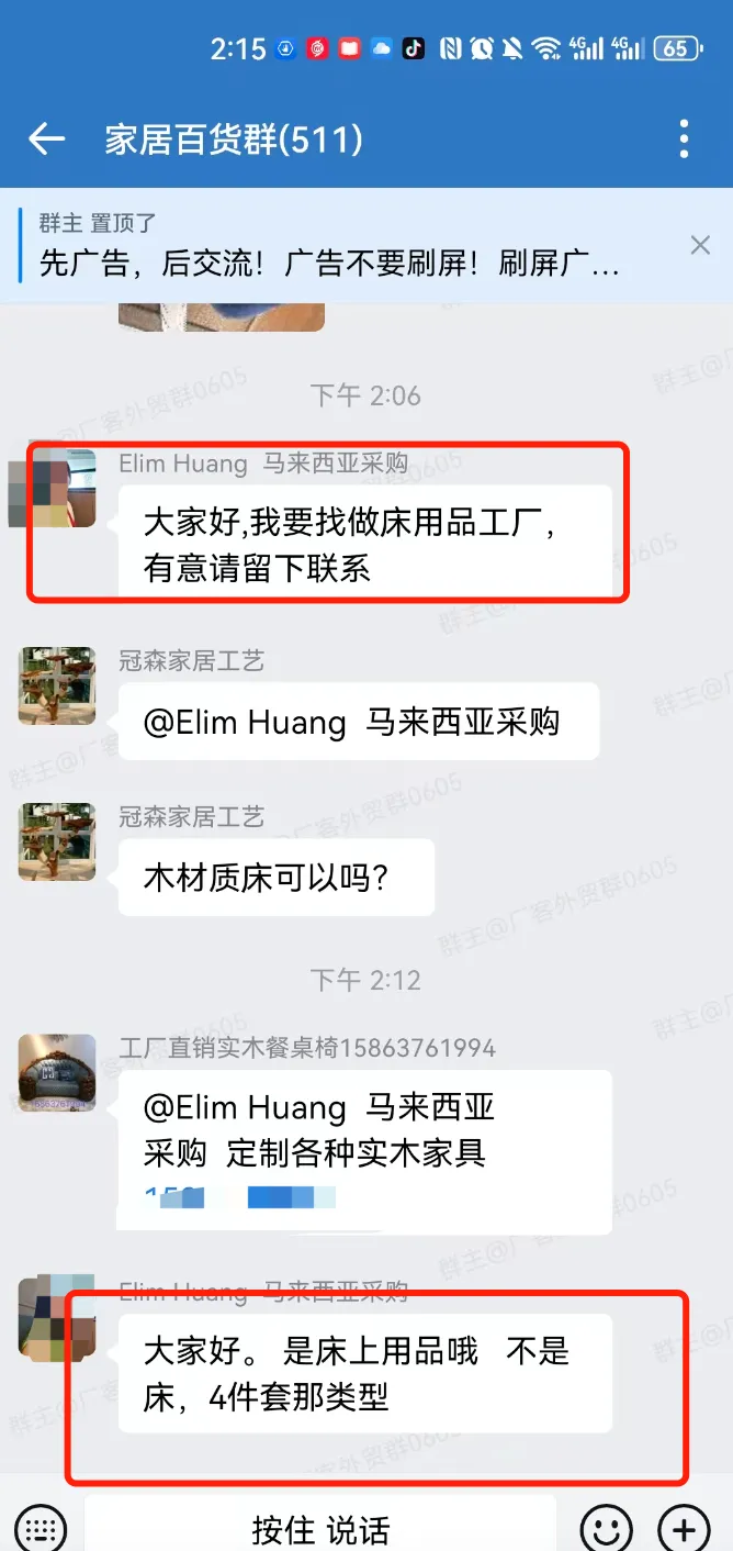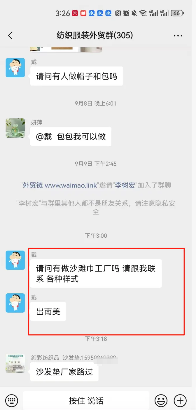 出口美国交流群,一个现有200多人,有采销需要的外贸人可以加入!群里可以发布的信息:外贸采购信息、产品销售信息,文字、图片、视频都可以,控制广告频率,不能刷屏广告。