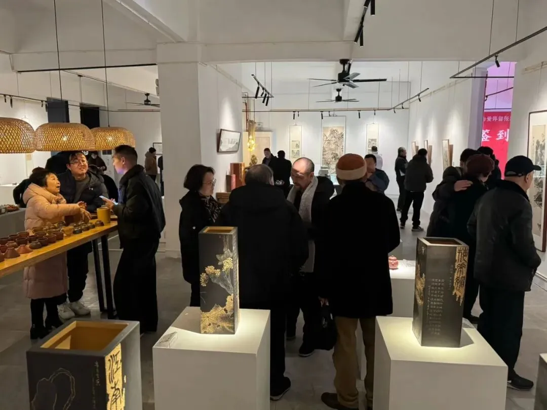 展览现场,观众们在一件件精美的作品前驻足欣赏,有的细细品味书画中的意境,有的则对紫砂陶艺的精湛工艺赞不绝口。现场嘉宾好奇地触摸着紫砂陶艺品,感受着艺术的温度。整个展览不仅是一场视觉的盛宴,更是一次心灵的洗礼。张志宝亲自为观众讲解了他的创作理念和作品背后的故事,让观众更加深入地了解每一件作品的内涵。
