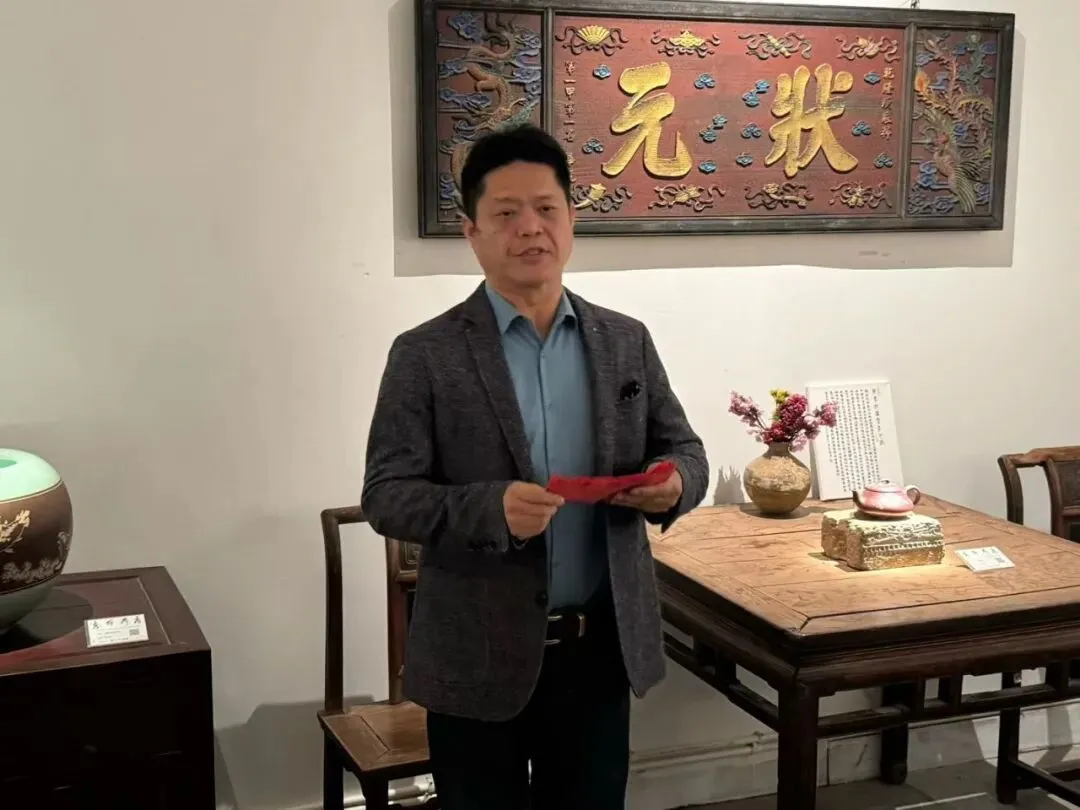 其次第二个感谢,我要感谢宜兴的这方水土,刚来宜兴那年我30岁,今年43岁,我只所以能在这里举办这次个展,是和宜兴,和我遇见个各位师友们分不开的。一路走来,太多的感恩感谢!(更多故事详见小君访谈,宜兴交通台20256月24日,以刀代笔刻紫砂,守正创新传非遗)