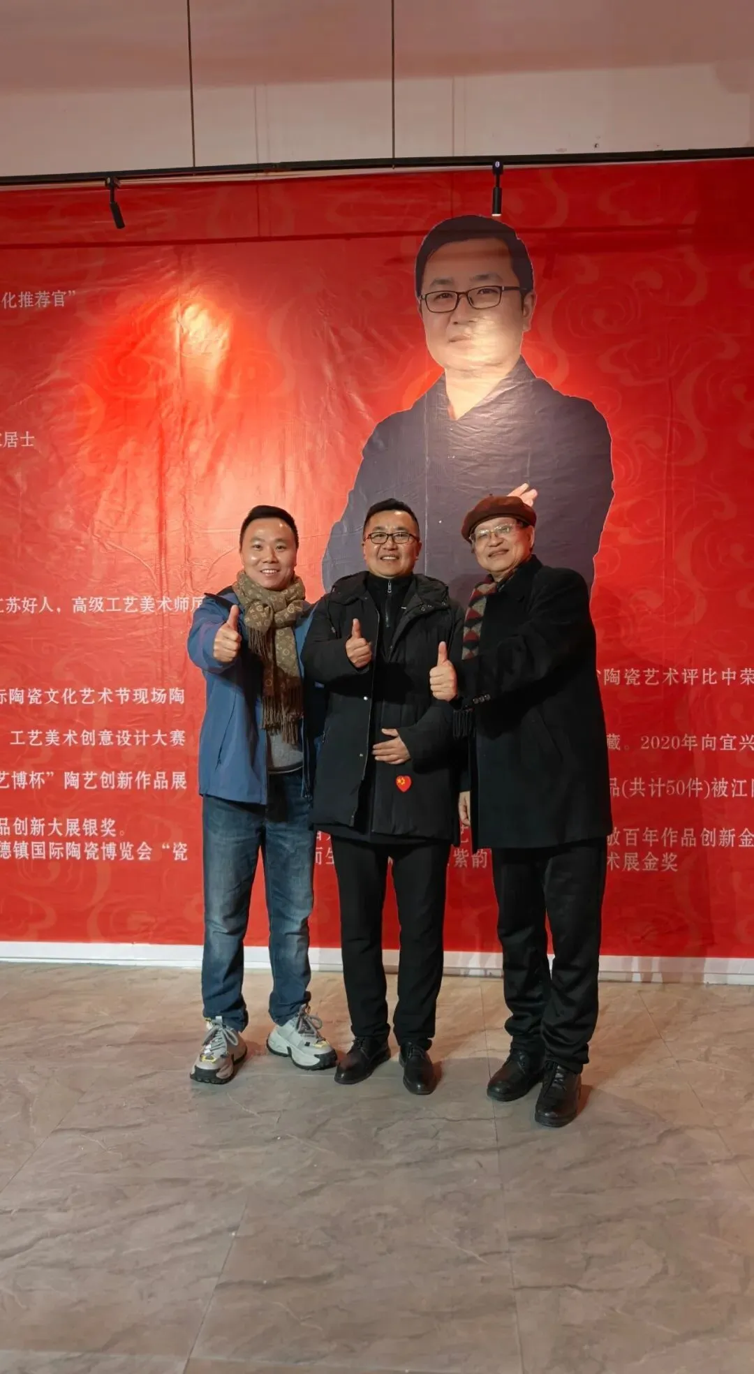 参加本次展览的嘉宾有江苏省工艺美术行业协会副秘书长赵文胜先生、中国江苏网·匠心江苏频道总监蒋雪梅女士、中国陶瓷艺术大师、宜兴市刀笔书法协会顾问邱玉林先生、中国工艺美术大师王潇笠女士、宜兴市刀笔书法协会监事长吴伯祥先生、宜兴市爱沐义工社社长曹亚萍女士、宜兴市陶瓷行业协会副秘书长、花盆分会执行会长兼秘书长陈士权,绍兴市美协理事、诸暨市美协副主席兼秘书长、张志宝书画启蒙老师邹海明先生、宜兴市山东商会会长、张志宝陶刻老师厉上清先生、宜兴市刀笔书法协会常务顾问周顺元先生、新华网宜兴联络中心负责人、“品宜兴”自媒体创始人、宜兴市古镇文化研究会副会长闵学平先生、宜兴市整形美容学会会长焦杰君先生、宜兴市刀笔书法协会常务副会长、辽宁省陶瓷艺术大师程文兵先生,大国工匠、宜兴市刀笔书法协会副会长、江苏省书协宜兴创作基地副主任、宜兴徐悲鸿画院紫砂陶刻研究院院长李中财先生、宜兴市刀笔书法协会副会长、宜兴徐悲鸿画院花鸟画院长刘新群先生、宜兴市刀笔书法协会副会长、金石鼎神力公司董事长杨冶院女士、辽宁省陶瓷艺术大师甘惠琴女士,全国轻工技术能手、黑龙江陶瓷艺术大师宋庆杰女士、完美公司宜兴服务部总监李峰先生、一级美术师孙瑜先生、正高级工艺美术师刘梅仙女士、陈美艳女士、汪叶女士、老艺术家赵克南先生,以及到场紫砂圈的朋友。谢谢大家的到来!