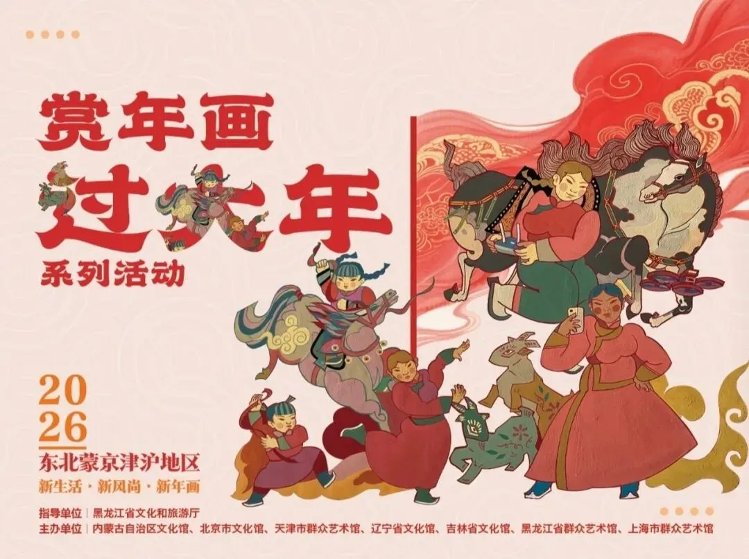 为深入学习贯彻习近平文化思想,落实党的二十大和二十届四中全会精神,引导推动群众文艺创作,深入开展全民艺术普及,以中国现代民间绘画为抓手,促进中华优秀传统文化创造性转化创新性发展,丰富人民群众精神文化生活,特举办2026年东北蒙京津沪地区“新生活·新风尚·新年画”优秀作品联展。展览展出作品共计70幅,此次线上展览将分为七期展示。