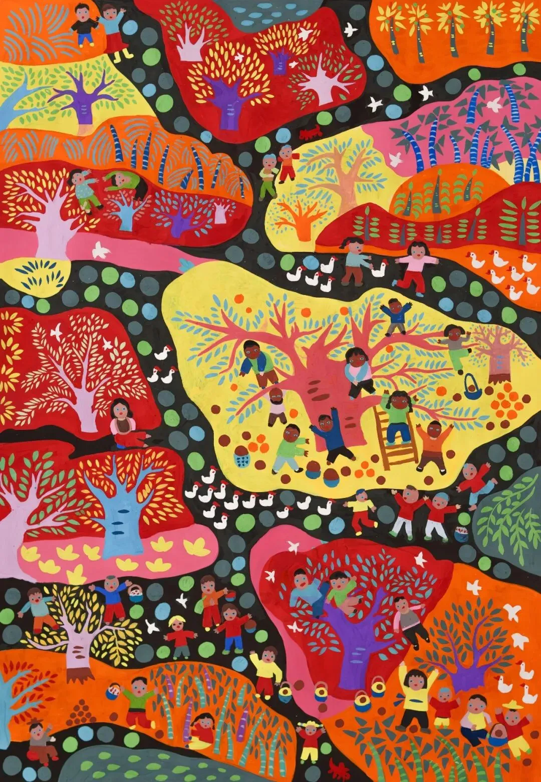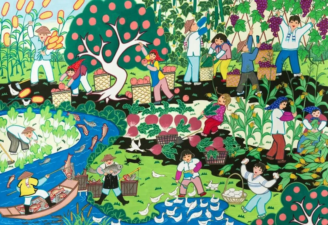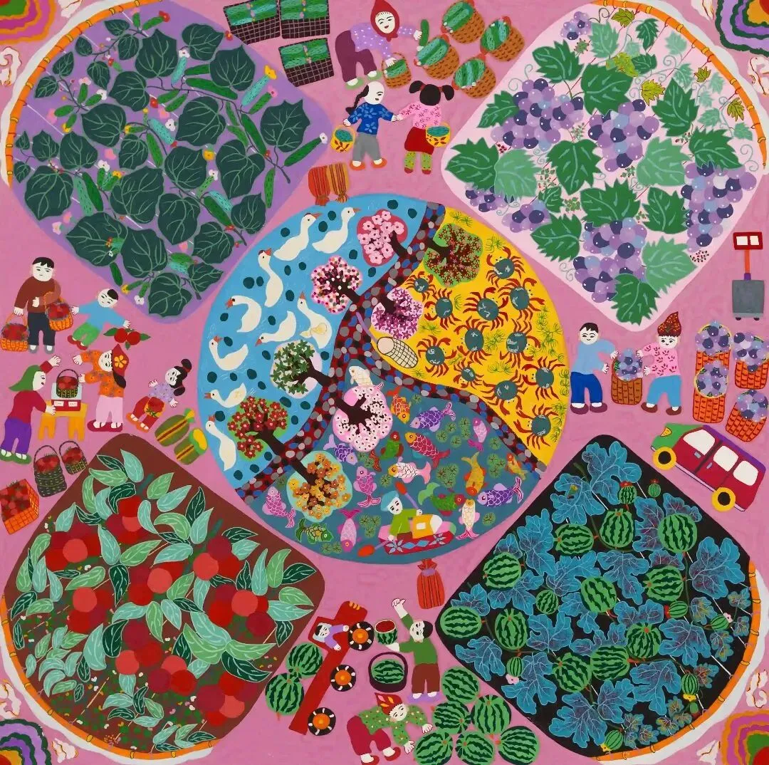 北辰民间绘画,作为天津农民画的重要分支,自20世纪70年代发源以来,历经50余年发展,已成为天津市重点文化品牌之一。其艺术风格扎根津郊沃土,融汇剪纸、刺绣等民间技艺,以饱满的构图、明快的色彩和强烈的装饰性著称。作品题材广泛,涵盖农耕劳作、民俗风情、历史故事等,生动勾勒出北辰人质朴率真、乐观幽默的生活气息。多年来,天津市群众艺术馆持续关注并支持北辰民间绘画的发展,通过组织专题展览、提供创作指导、搭建交流平台等方式,助力其艺术水平提升和品牌影响力扩大,使其成为天津群众美术创作的一张亮丽名片。