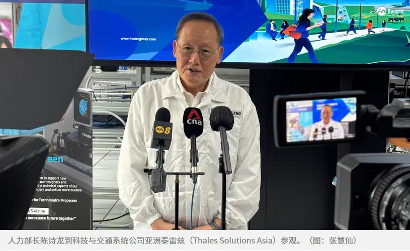 新加坡人力部长陈诗龙昨天(6日)早上走访其中一家参与计划的公司--科技与交通系统公司亚洲泰雷兹(Thales Solutions Asia),同见习生交流。