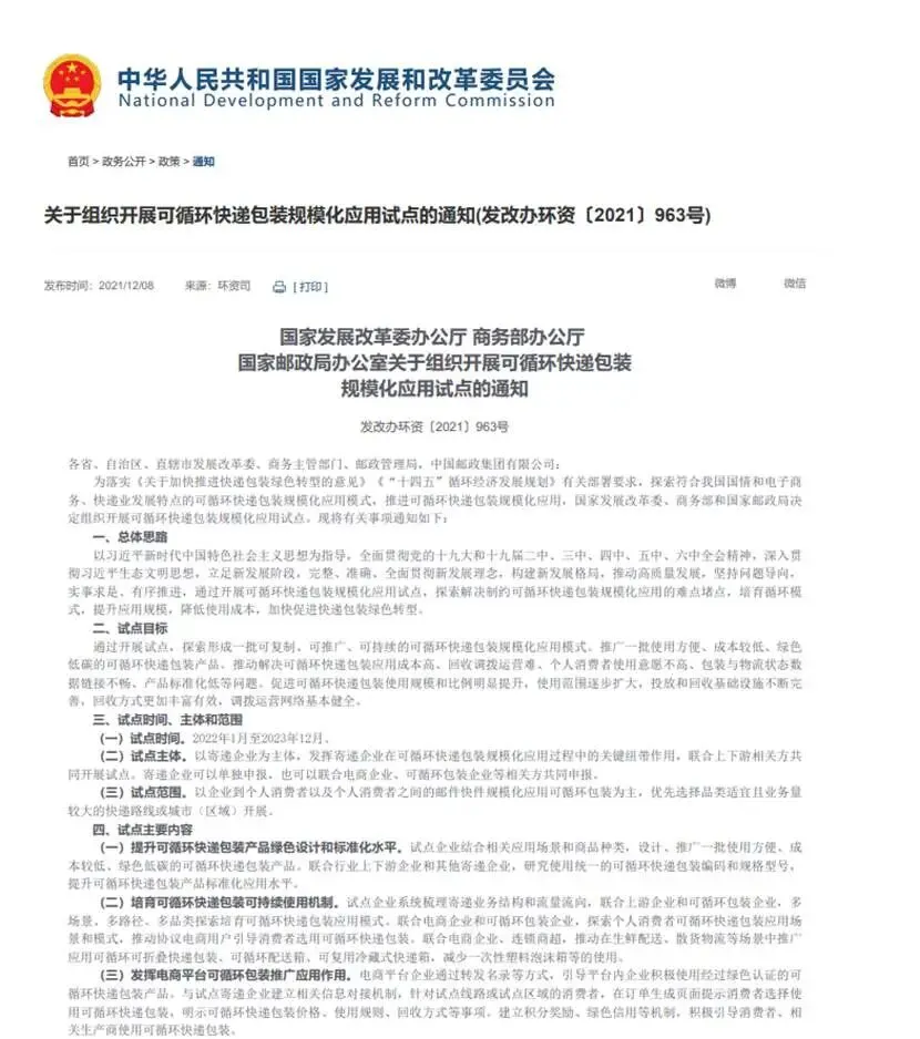 近年来,国家市场监管总局、邮政局、生态环境部等部门联合推动的《绿色包装评估指南》《快递包装循环利用试点实施方案》已明确: