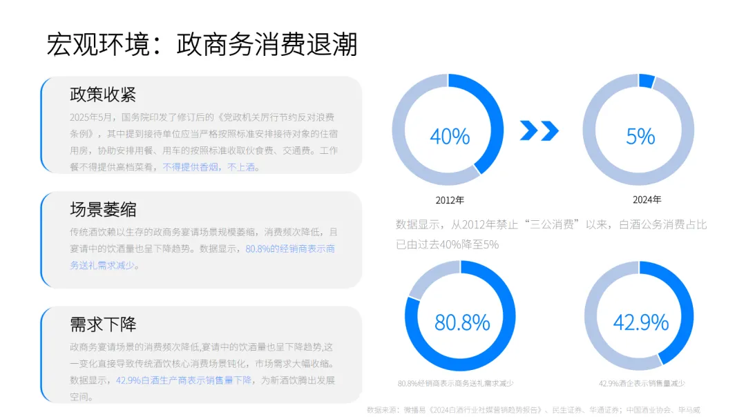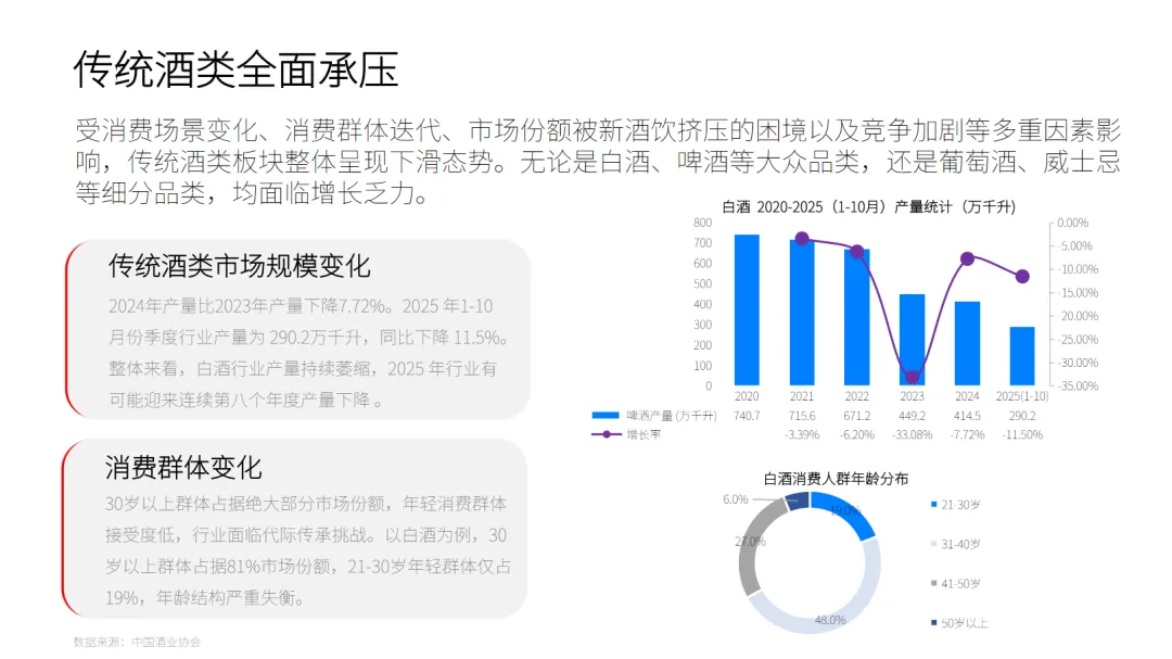 新六大核心场景的崛起,标志着酒类消费从单一的社交工具转变为生活方式的一部分。家庭晚酌、周末小聚、仪式性家庭场景、新商务场景、城市小聚和轻夜生活等,都成为新酒饮消费的重要场景。这些场景的共同特点是对健康、轻松和个性化的追求,以及对饮酒体验的新期待。