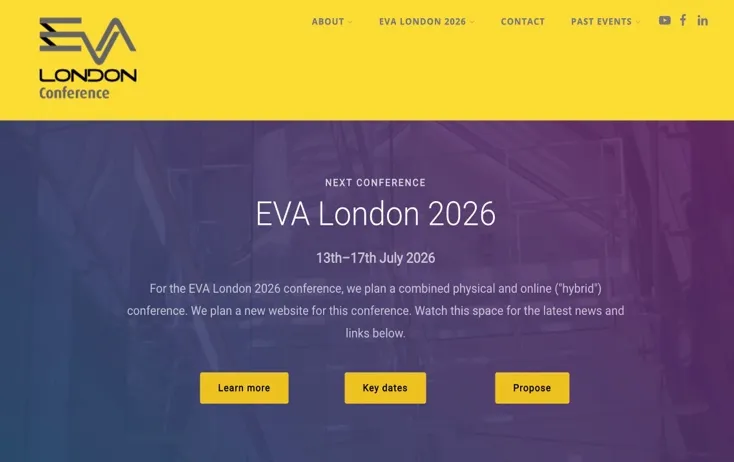 EVA London 2026将于2026年7月13日-2025年7月17日在英国伦敦举办,我院作为本届会议的协办院校,现面向社会征集数字艺术设计作品及论坛论文,入选作品/短论文将在大会期间展示与汇报。