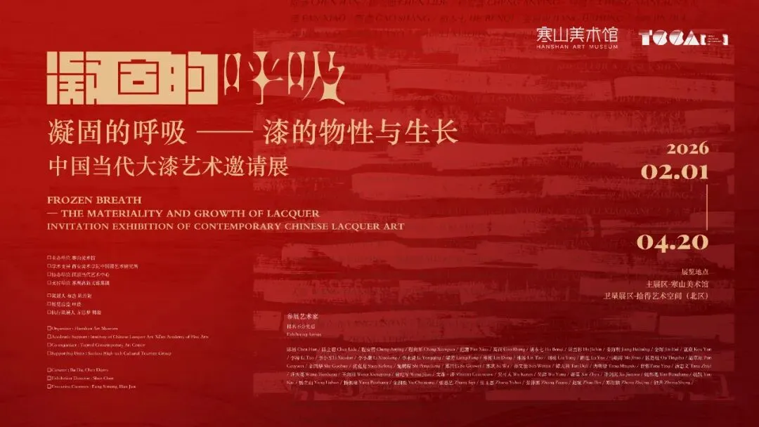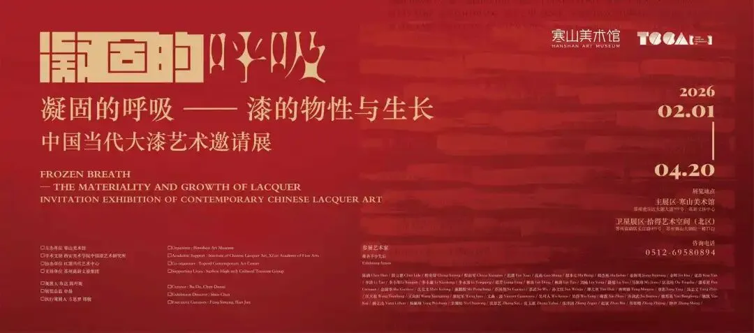 2026年2月1日,“凝固的呼吸:漆的物性与生长——中国当代大漆艺术邀请展”于苏州寒山美术馆正式开幕,本次展览分为主展区-寒山美术馆,卫星展区-拾得艺术空间(北区),展期将持续至4月20日 。