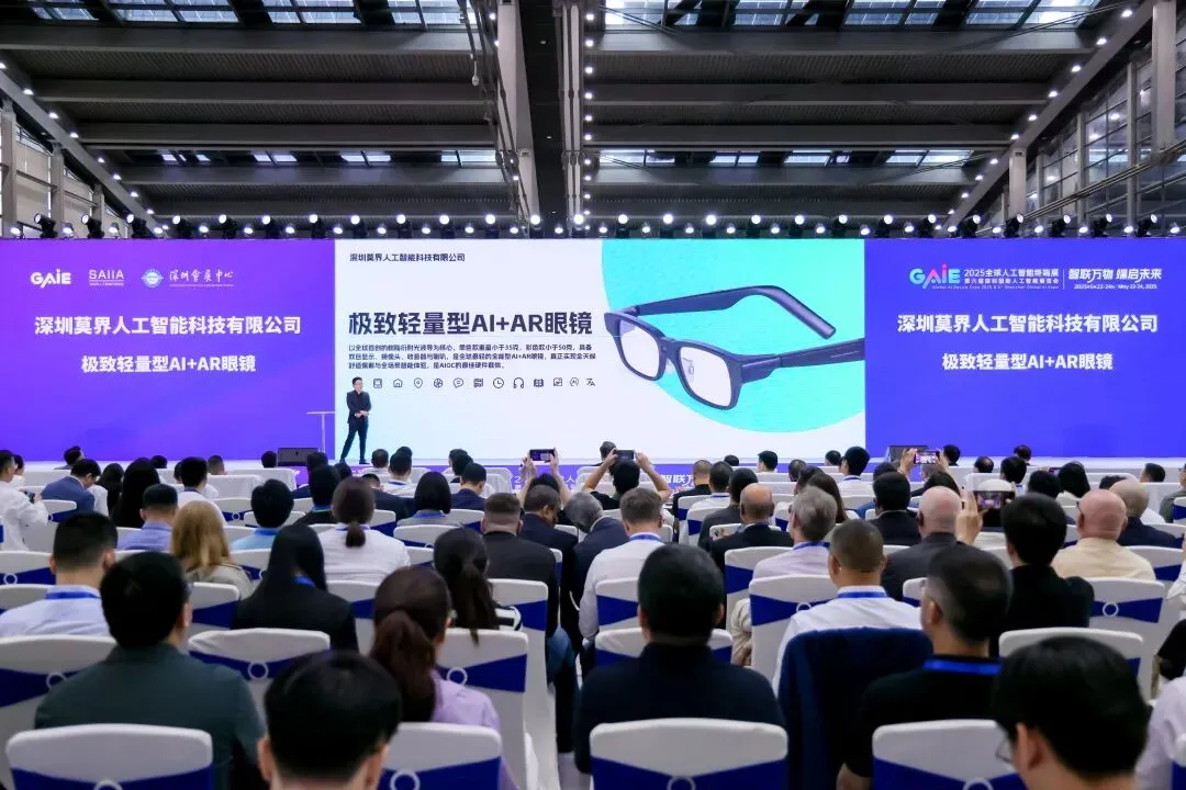 (2025全球人工智能终端展暨第六届深圳国际人工智能展开幕式,莫界科技发布极致轻量型AI+AR眼镜)