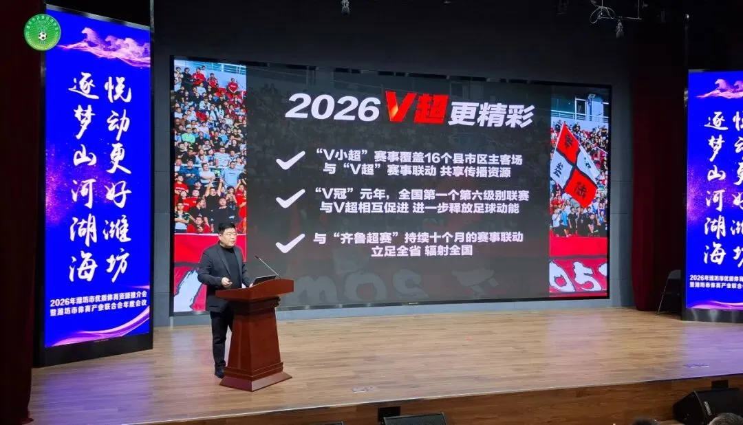 此次推介会为V超搭建了高效的资源对接平台。潍坊市足球运动协会诚邀社会各界企业积极参与、深化合作,共同推动V超迈向全国性群众足球品牌,为潍坊体育强市建设注入新动能。