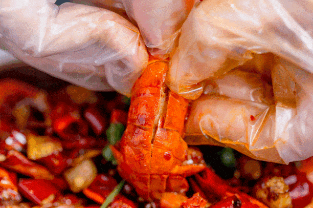 小龙虾和辣味相互结合逐渐在口腔内迸发